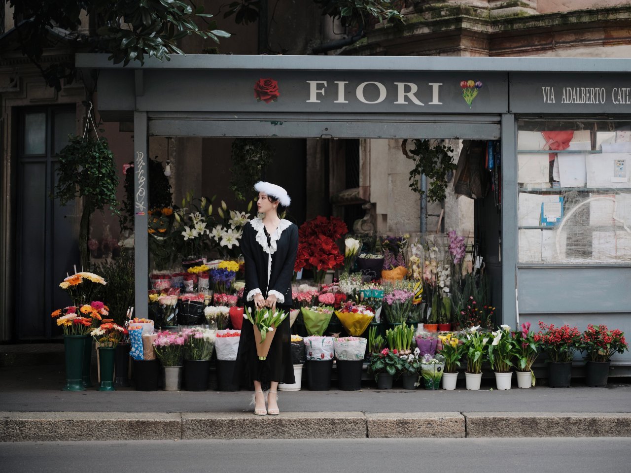 陈小纭米兰时装周首秀 被这套造型圈粉了,把蕾丝穿出了温柔的力量感,米兰街头最亮眼
