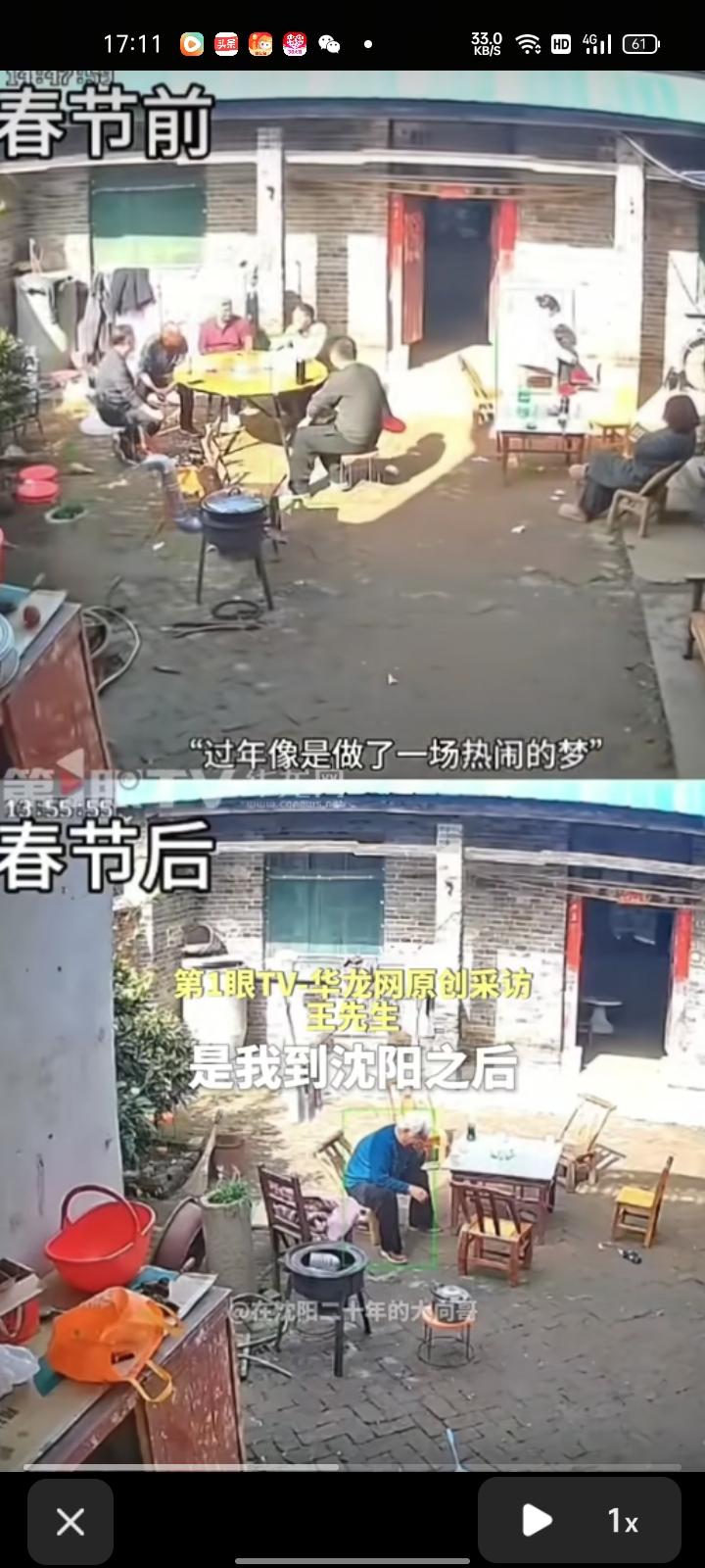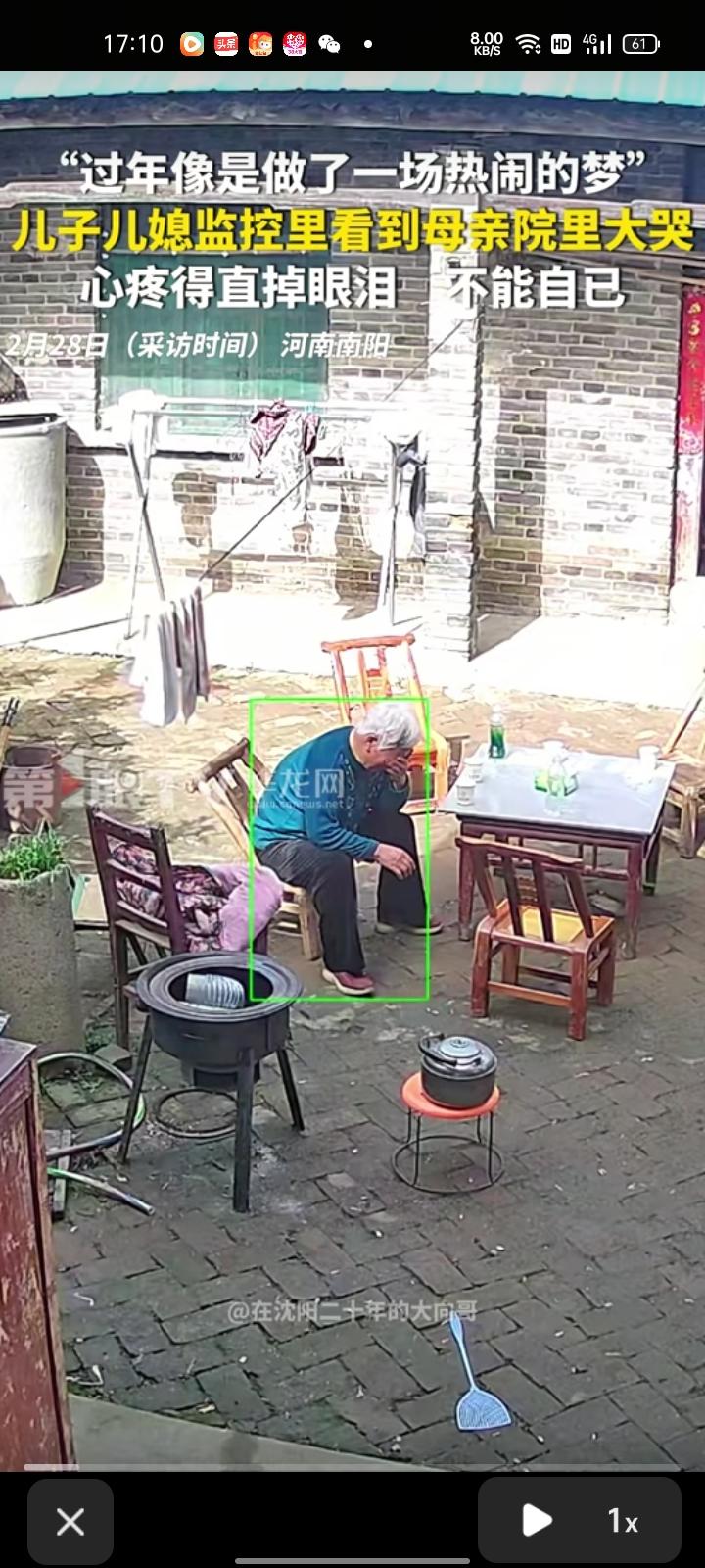 2月26日,河南南阳。过年像是做了一场热闹的梦,儿子儿媳出门时,从后视镜看到母亲站的比较远,可能是母亲不想让他们心里难受。 儿子王先生称,这个监控是到沈阳才看的回放,看到老太太独自一人在院子里哭,心里真是特别难受,五味杂陈。回放看了一遍后,不敢看第二遍了