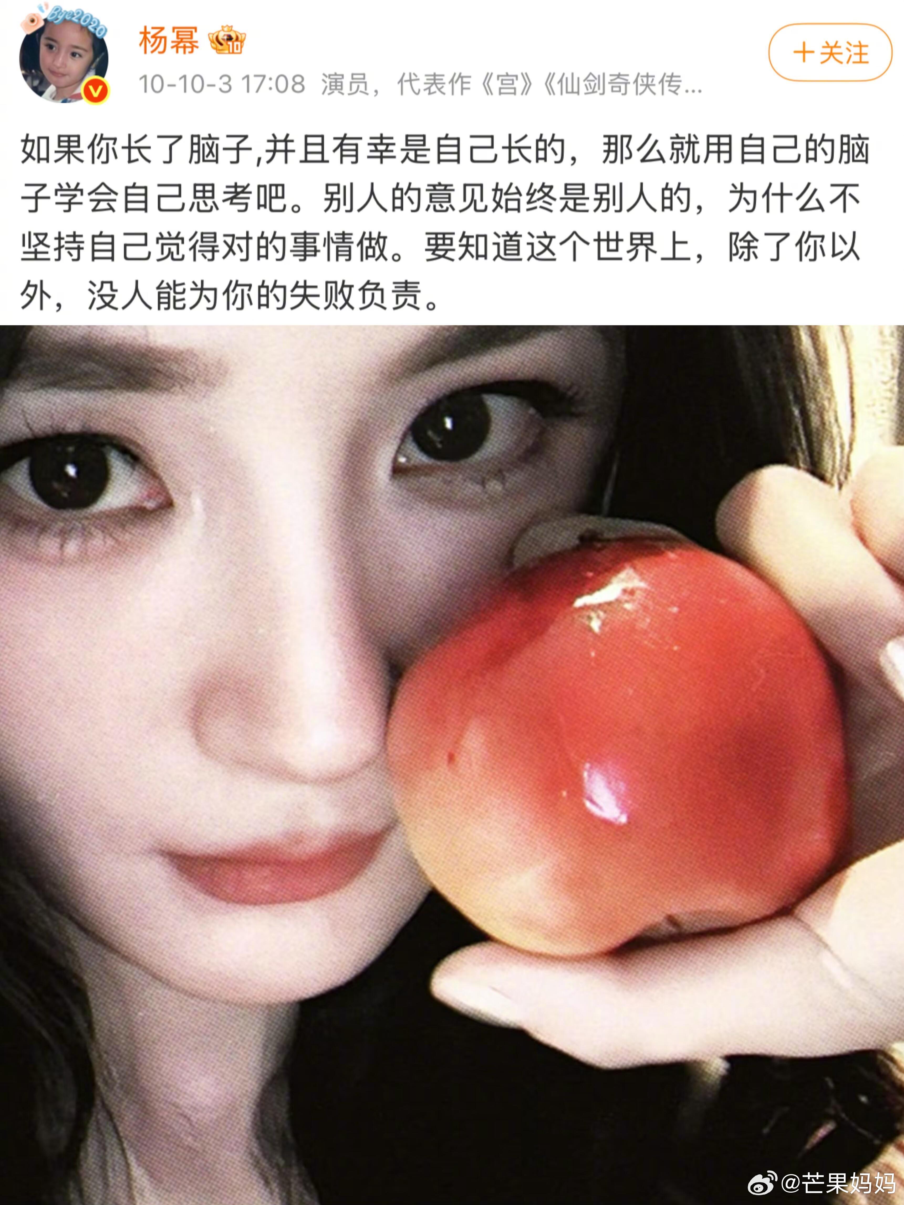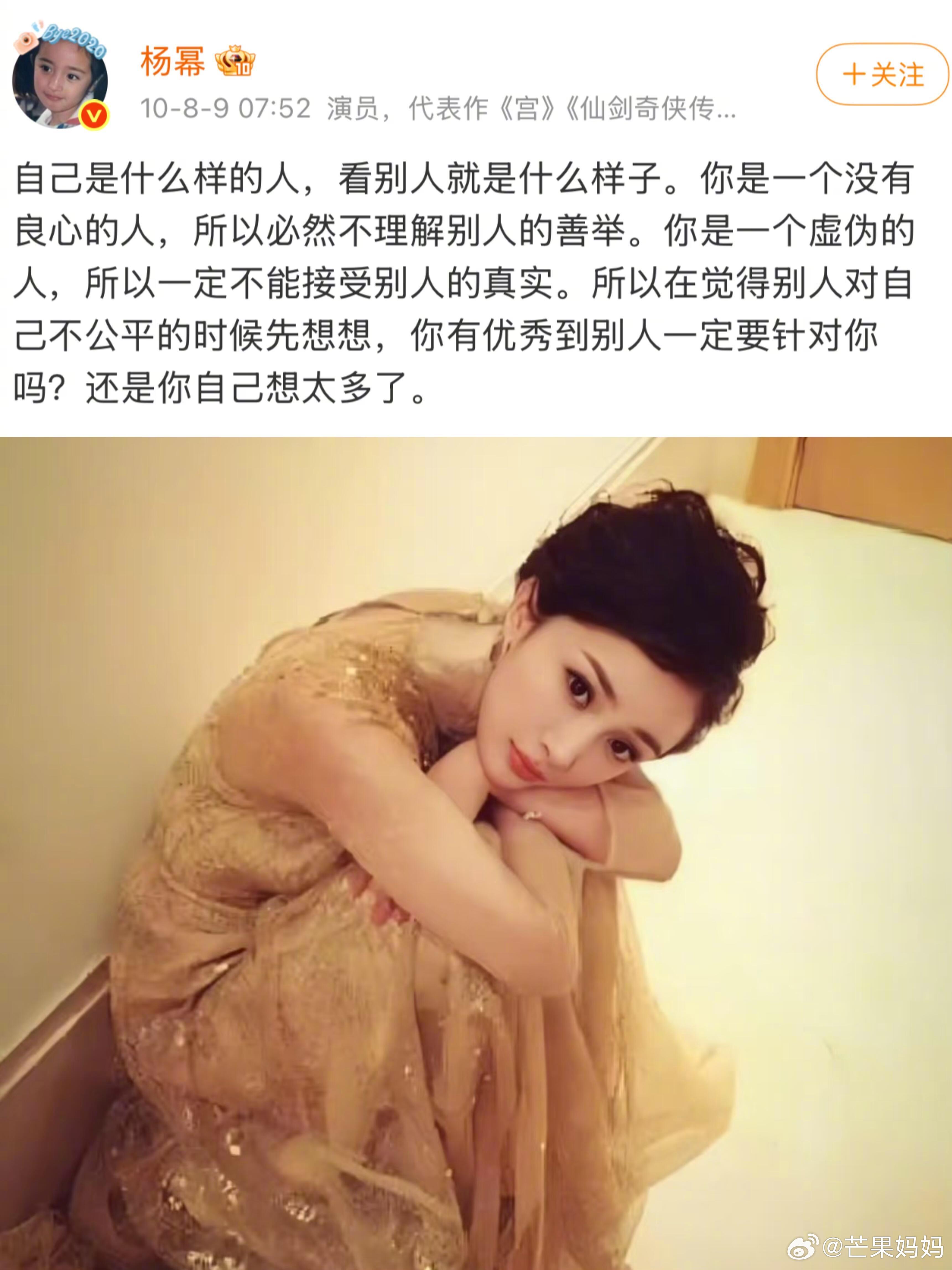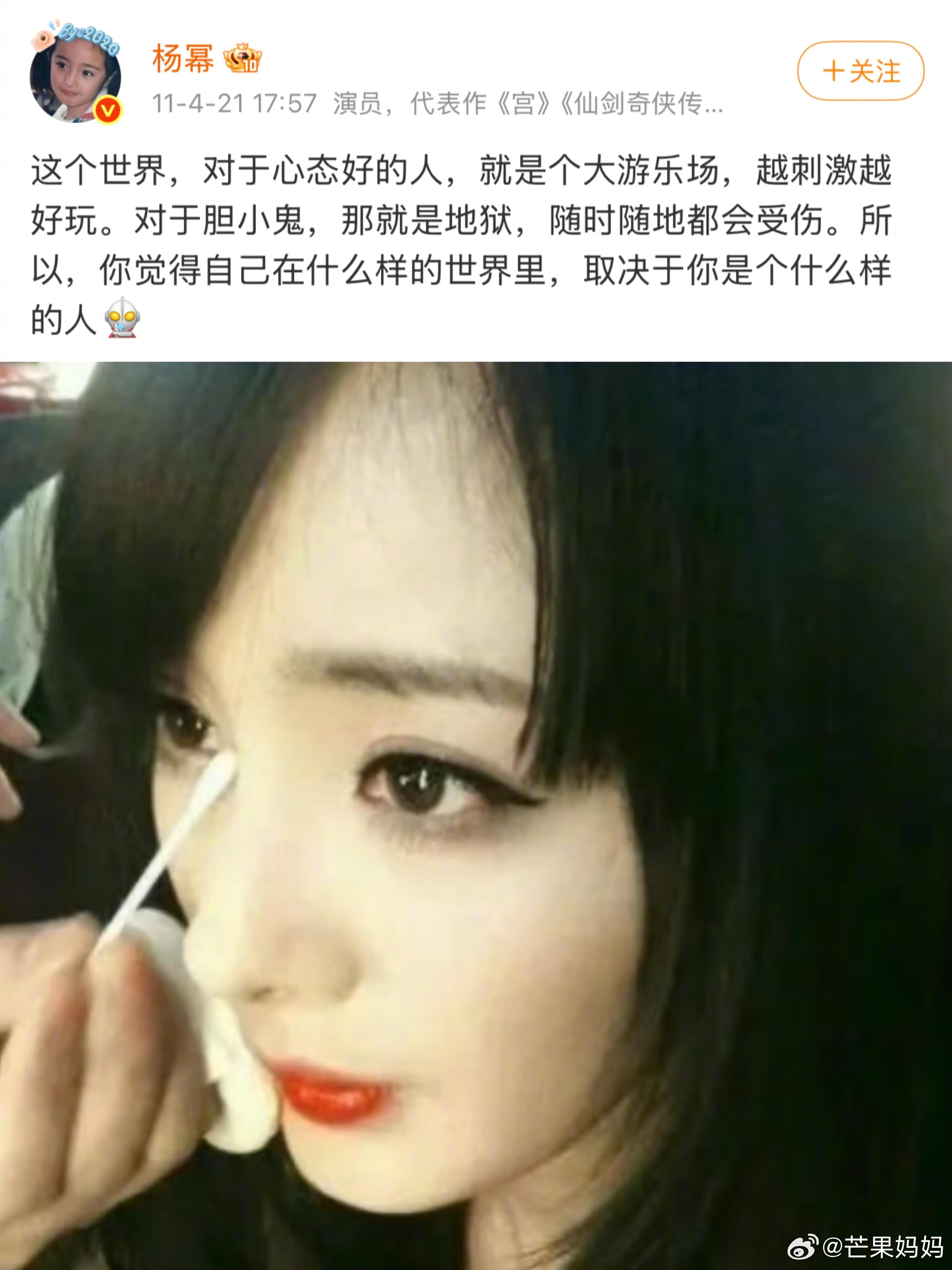 杨幂 得罪就得罪吧“这个世界对于心态好的人就是一个巨大的游乐场”,幂姐的思想一直都很超前