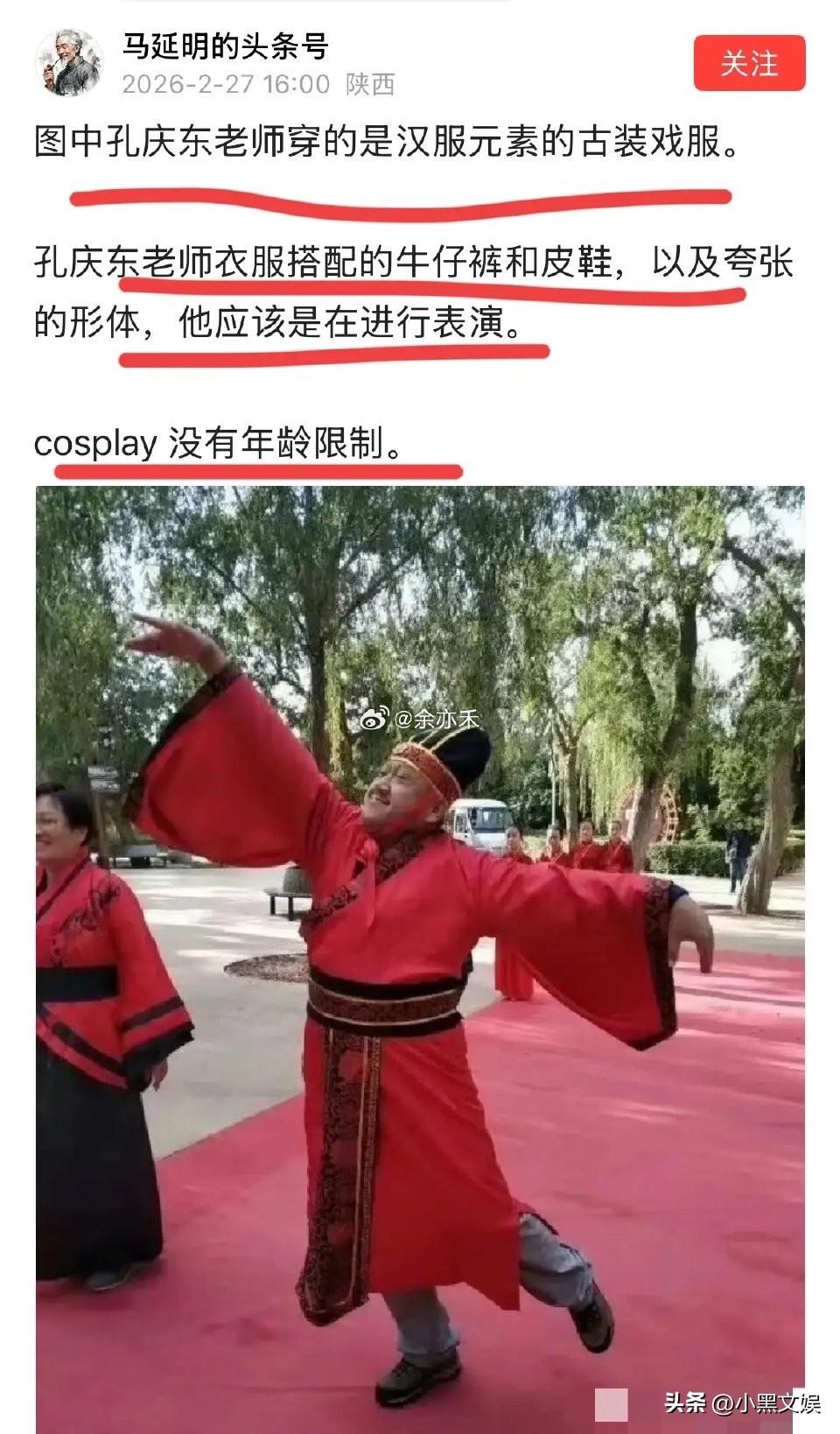 他们穿就是时尚! 我们穿就要被骂? 孔某人这穿的是什么?看起来他应该很开心的啊。 有人翻出孔某人穿服饰,从照片看他应该很开心的啊,毕竟笑容在脸上从未停止过。可为什么他要对一个穿汉服的小朋友在大过年的大骂? 难道他们穿就行,我们自己穿就要被污名化。
