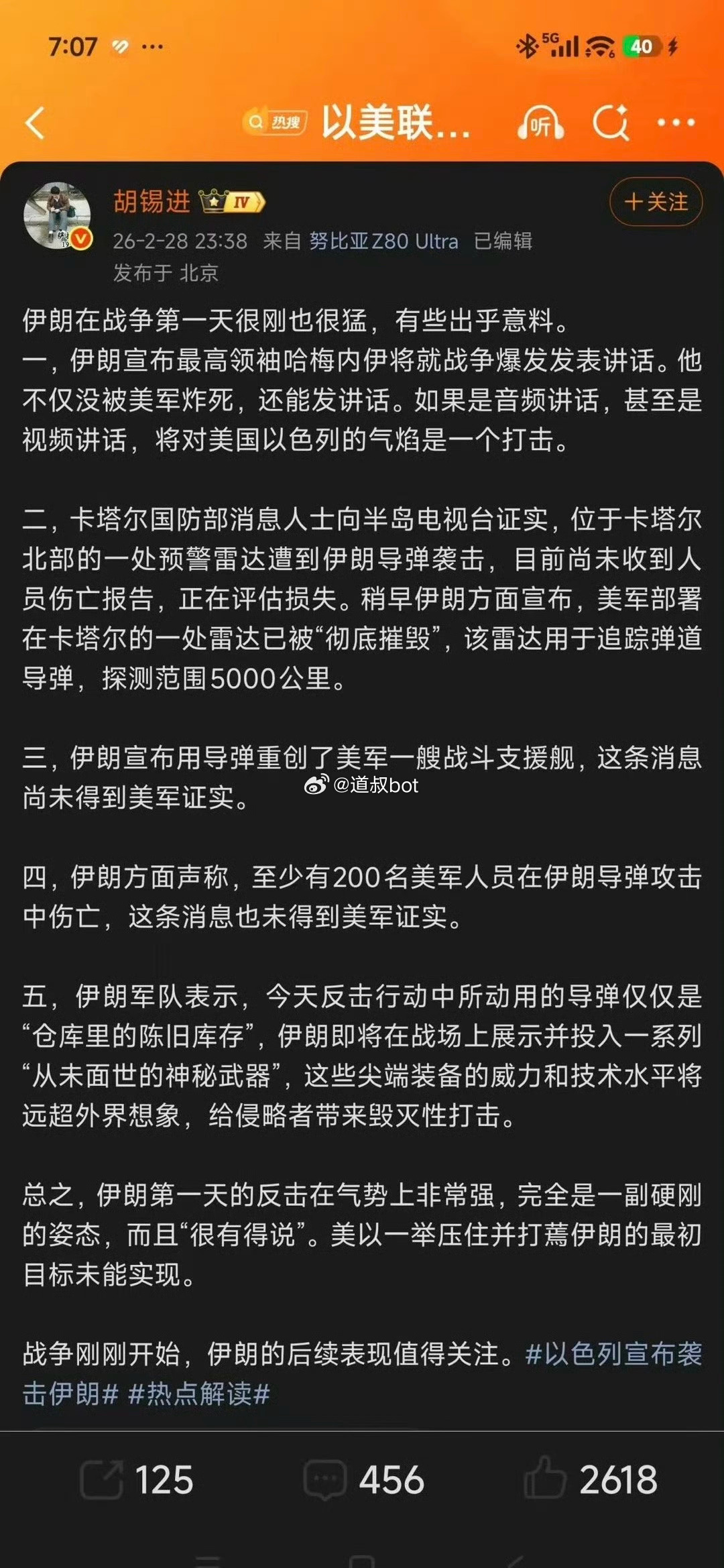 胡锡进讨伊朗局势。
