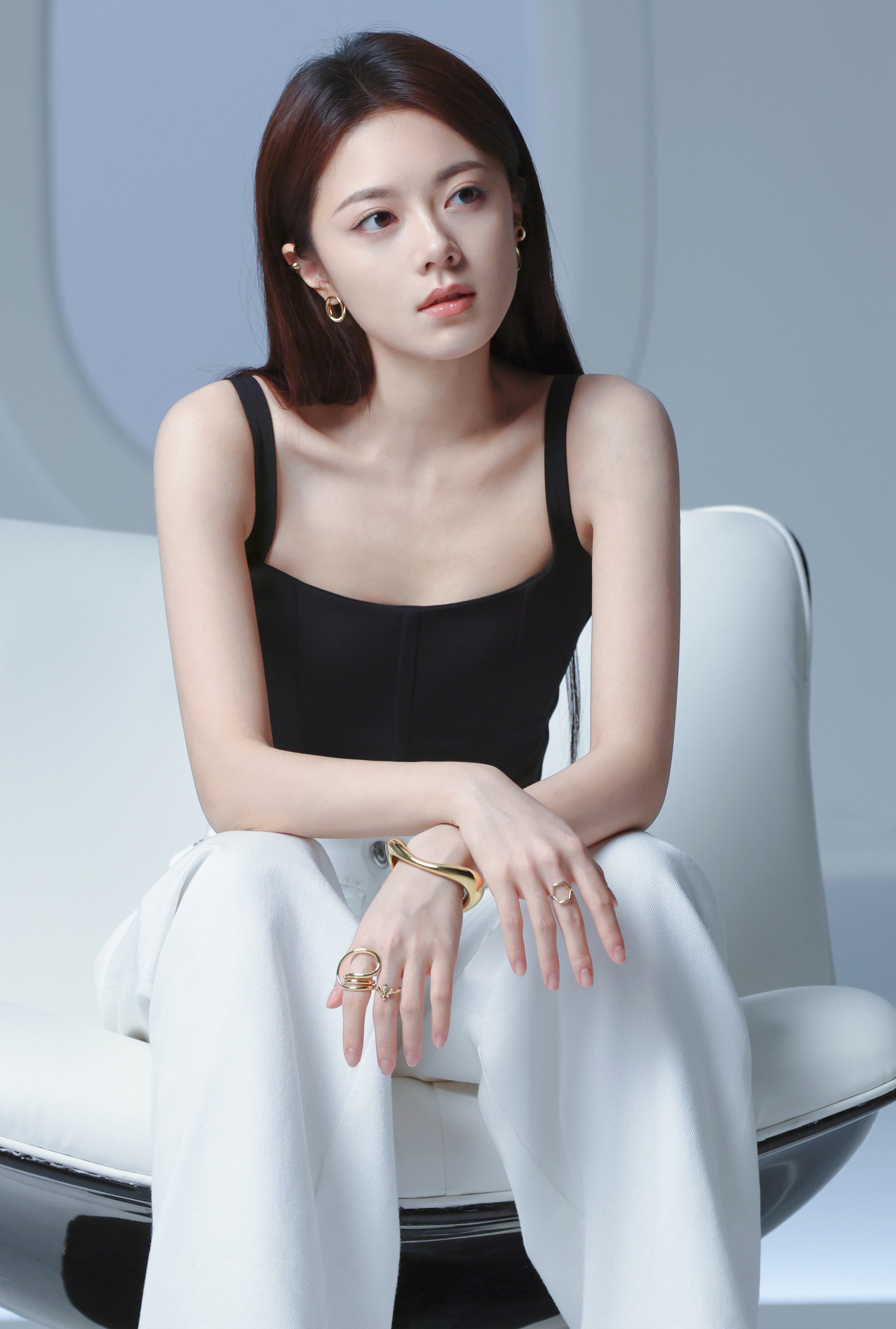 赵今麦流浪地球3造型 幂幂黑色吊带背心 大长腿白西裤 黑色一字带高跟鞋 高智感麦麦