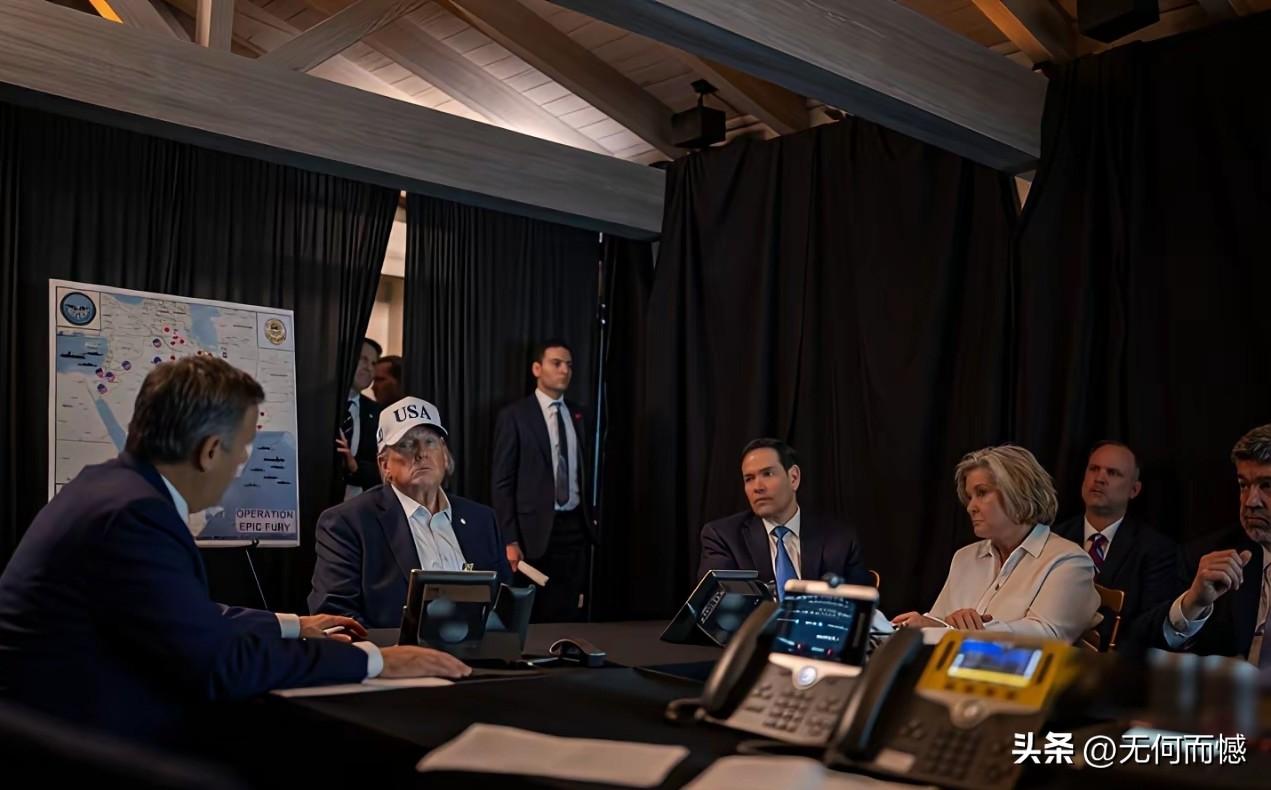 坐在老特对过的女子是谁?在这么重要的场合,她坐的位置比较靠前,离老特也比较近,正在打着手势,和老特交流着什么,老特听的很认真,说明她说的东西很有分量,也很重要,在这次袭击伊朗的过程中,这个女子应该是一个很重要的角色!