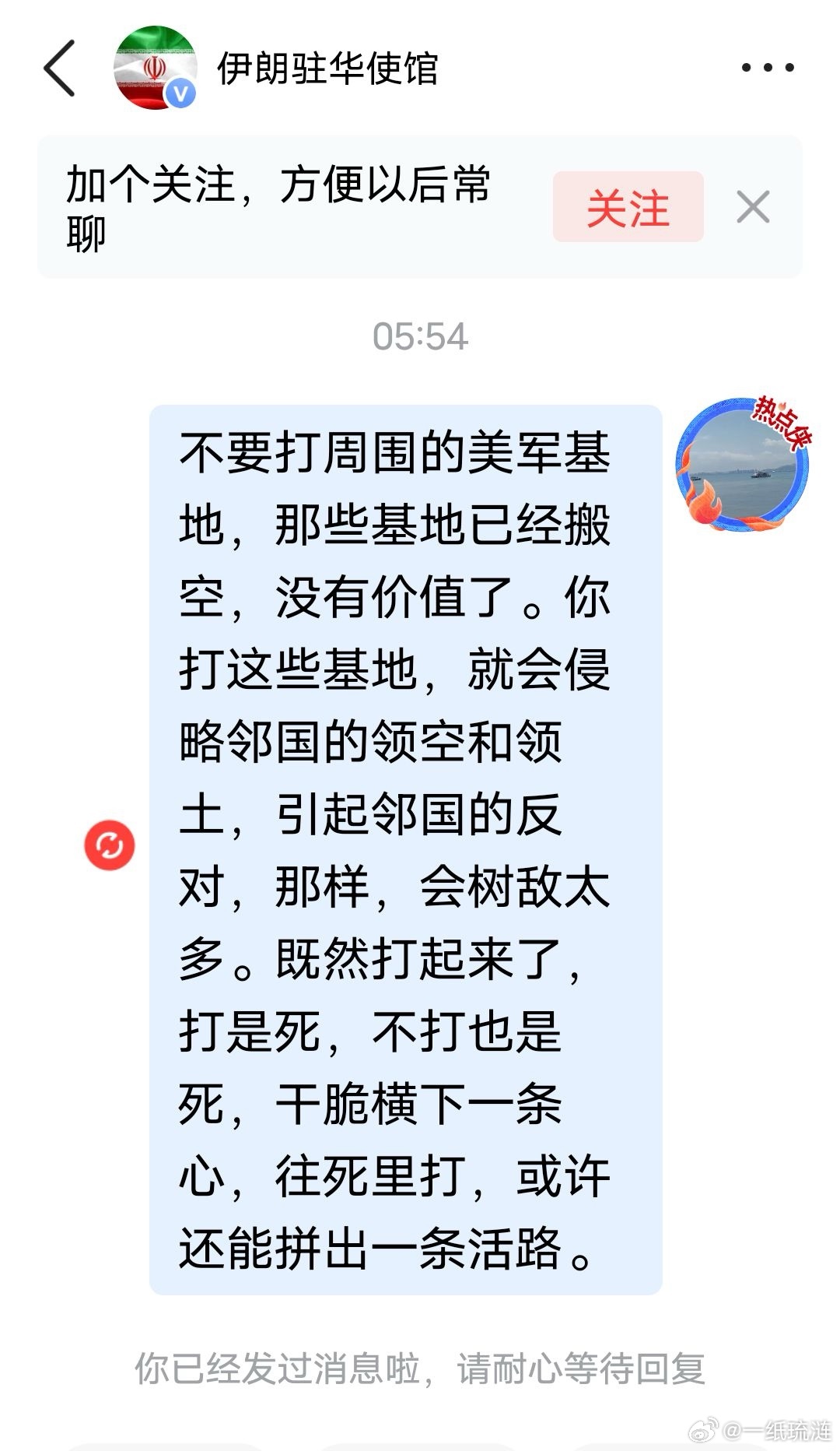 网友给伊朗出的这个点子,不错。伤其十指,不如断其一指。哈哈哈,好策略,简明扼要,通俗易懂。就好比遭人群殴时,要薅住一个下死手。就看伊朗的头脑,清醒不清醒了。如果战略决心不对头,就是拿着一捆金箍棒也白搭。