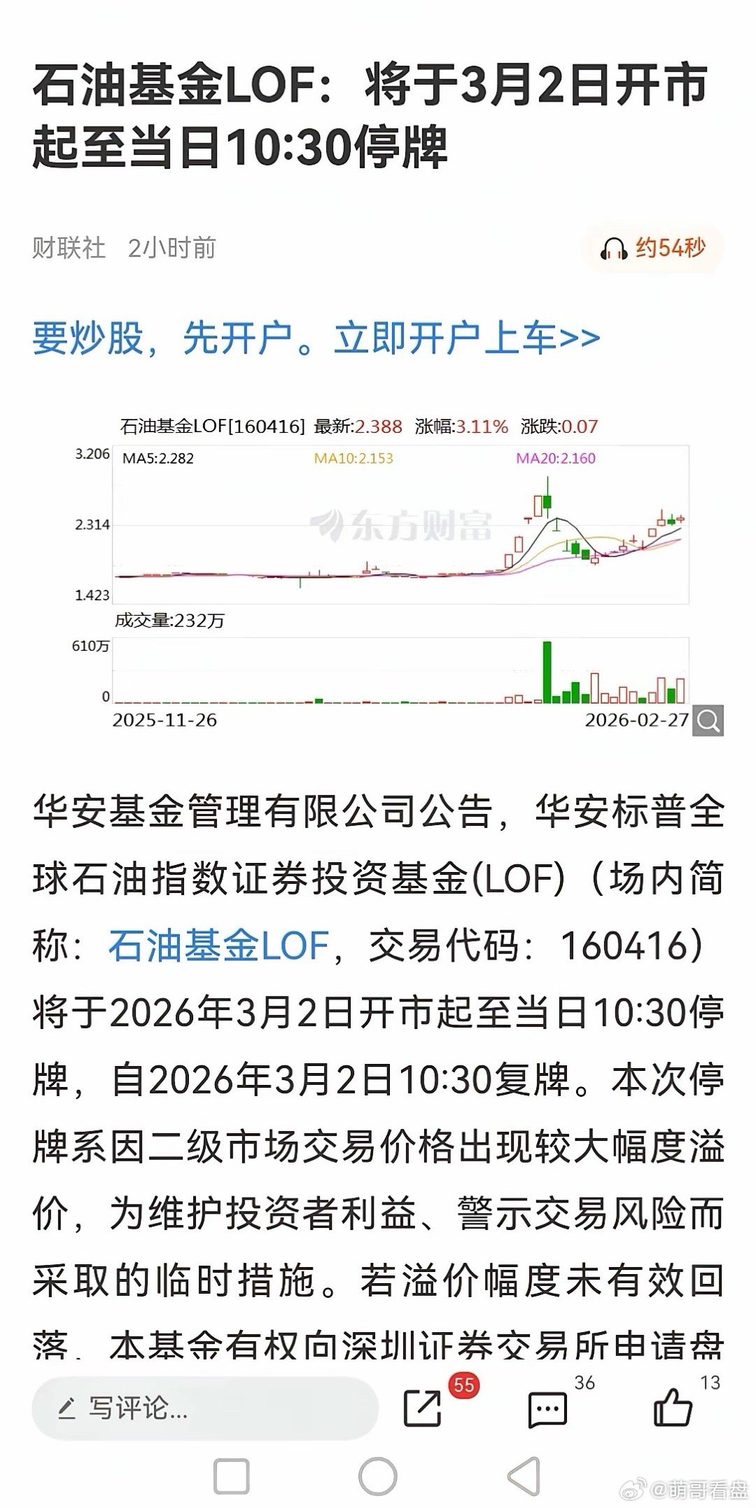 晚间市场传来三大重要消息,或影响A股明天相关走势。消息一,据相关基金公告称,白银、石油LOF因高溢价3月2日起停牌警示。这有助于防止商品盲目炒作,有助于保障投资者利益。消息二,据悉,从3月2日起,远期售汇风险准备金率从20%降至0。这有助于降低企业换汇成本,有助于稳定汇率。消息三,据报道,巴方称巴阿冲突中阿方已有415人死亡。各地区冲突不断,或将影响市场风险偏好,黄金等避险板块或将受益。对此你们怎么看?