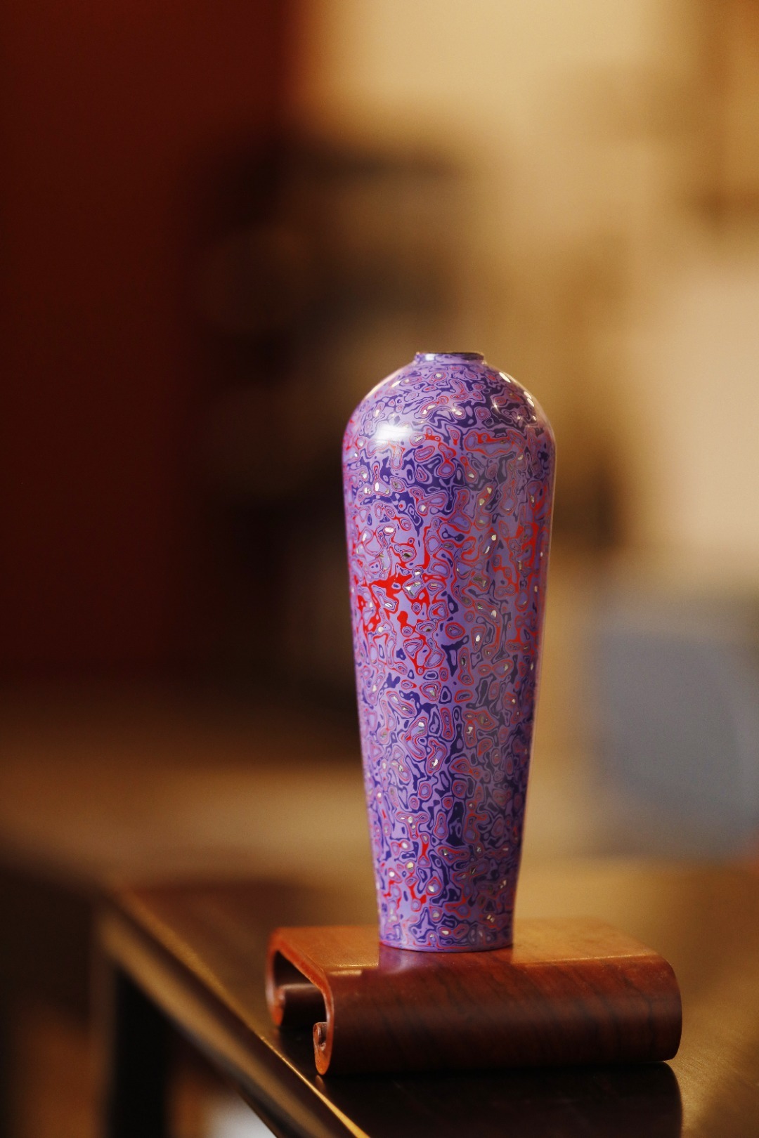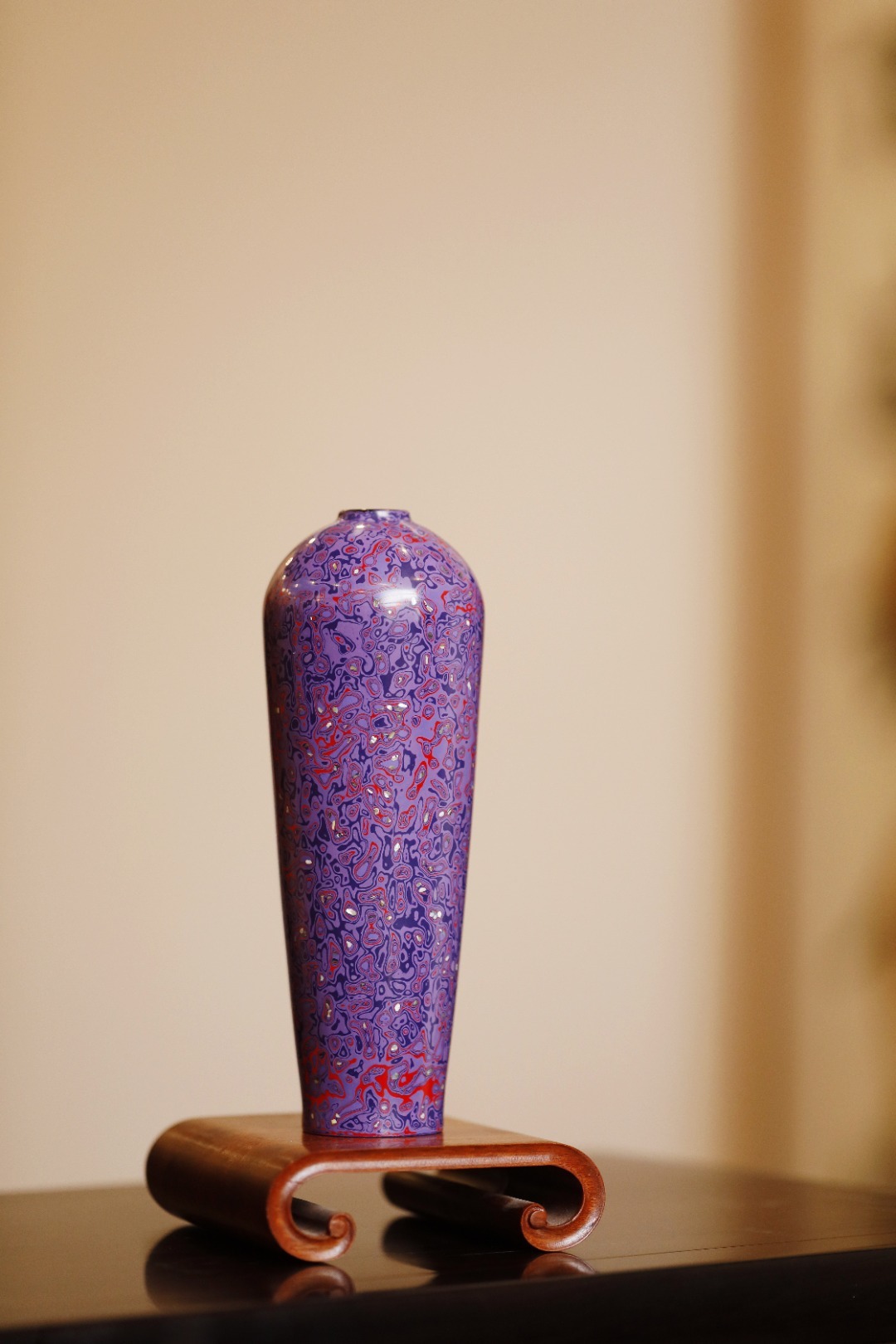 5.8*5.8*16.3cm 重260g 大漆 | 富贵紫·美人肩 花插 花瓶