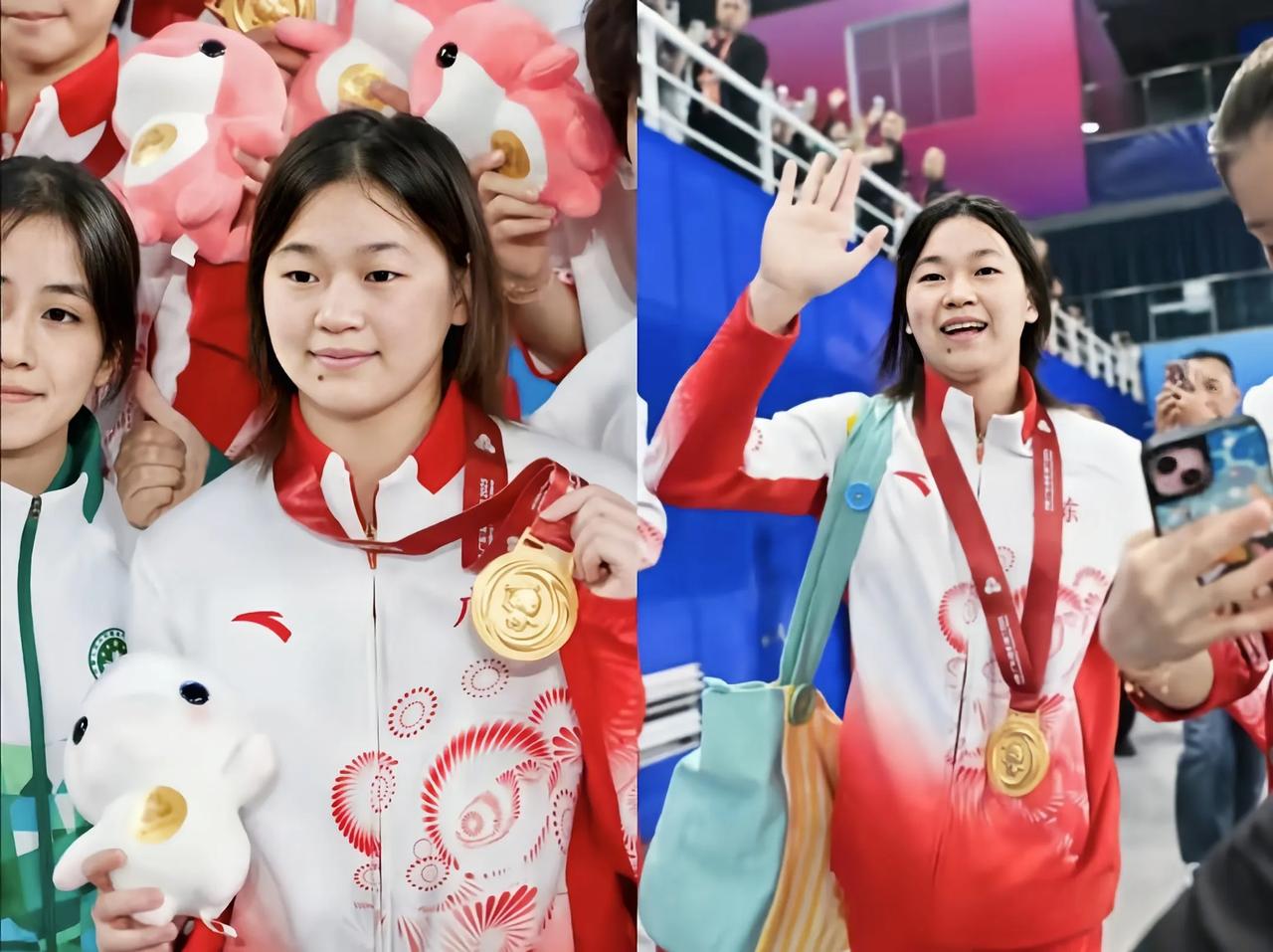 全红婵刚跳完街舞,就现身郑州看电影,为沈腾《飞驰人生3》免费代言 照片里她穿得挺随便,一件休闲装,头上扣着顶小蓝帽,站在那儿跟人合影,比着经典的剪刀手。有个细节挺戳人,说她脸好小,瘦了不少,手指细细长长的。看起来心情确实不错,笑得也放松。 有意思的是,今天又有网友在郑州机场碰见她,说是要飞回广州了。掐指一算,全国冠军赛快到了,也不知道她会不会参加。 其实每次看到婵宝私下被偶遇的照片,都觉得挺真实一个小姑娘。赛场上那么稳那么狠,下来也就是个爱看电影、爱戴小蓝帽、合影会乖乖比剪刀手的普通人。那种切换,反而让人更理解她——跳水是她,但这个也是她。 有人说她瘦了,可能是训练强度上来了吧。也有人说她状态看起来轻松,挺好,大赛前能放松点是点。 就是不知道她看《飞驰人生3》的时候,会不会也有点代入感?毕竟赛道不同,拼劲儿是相通的。