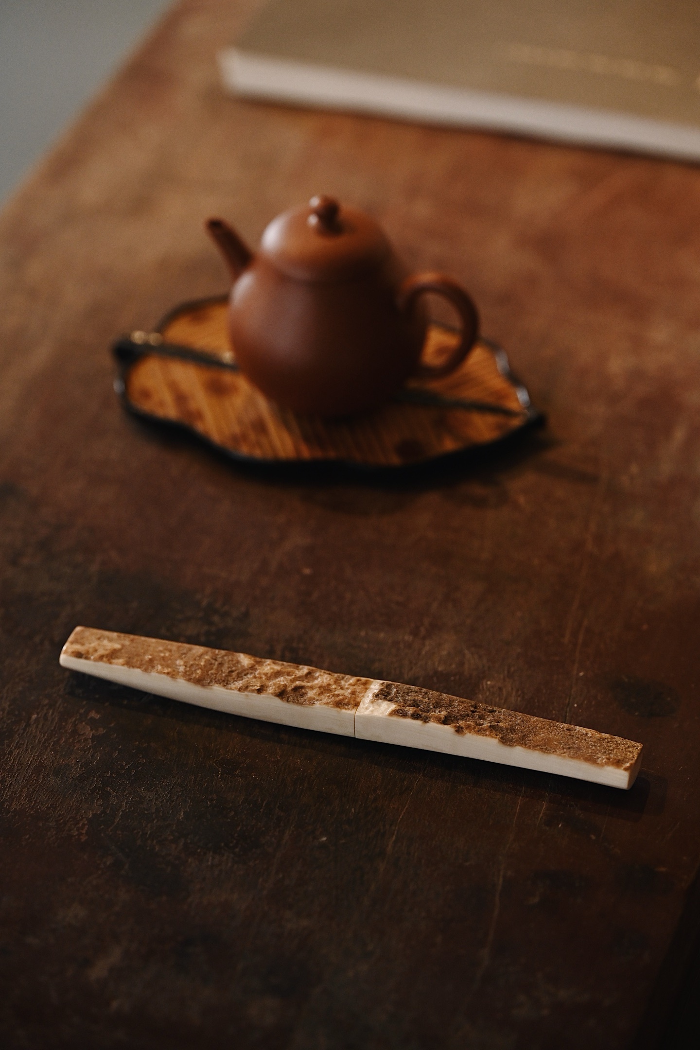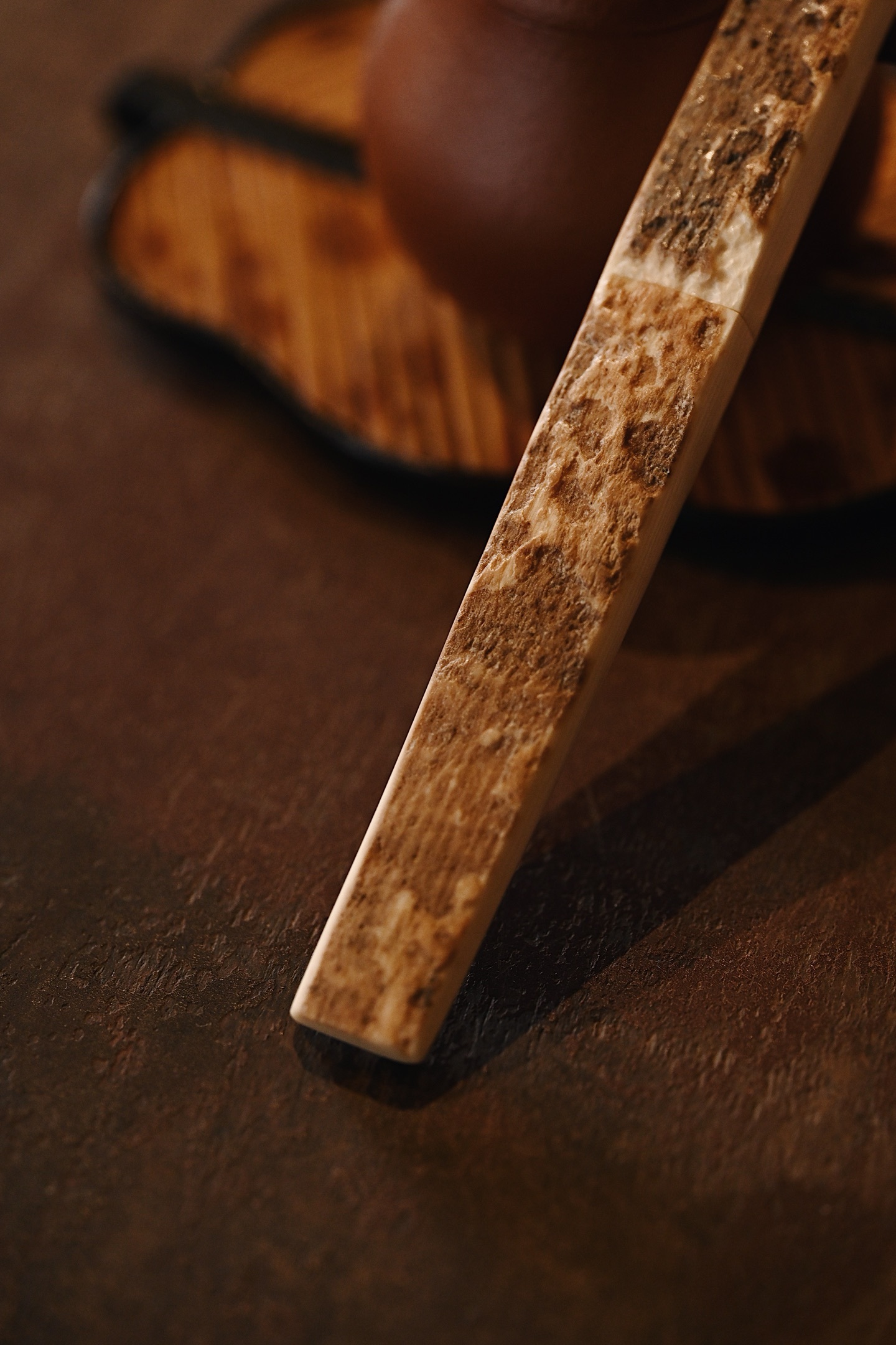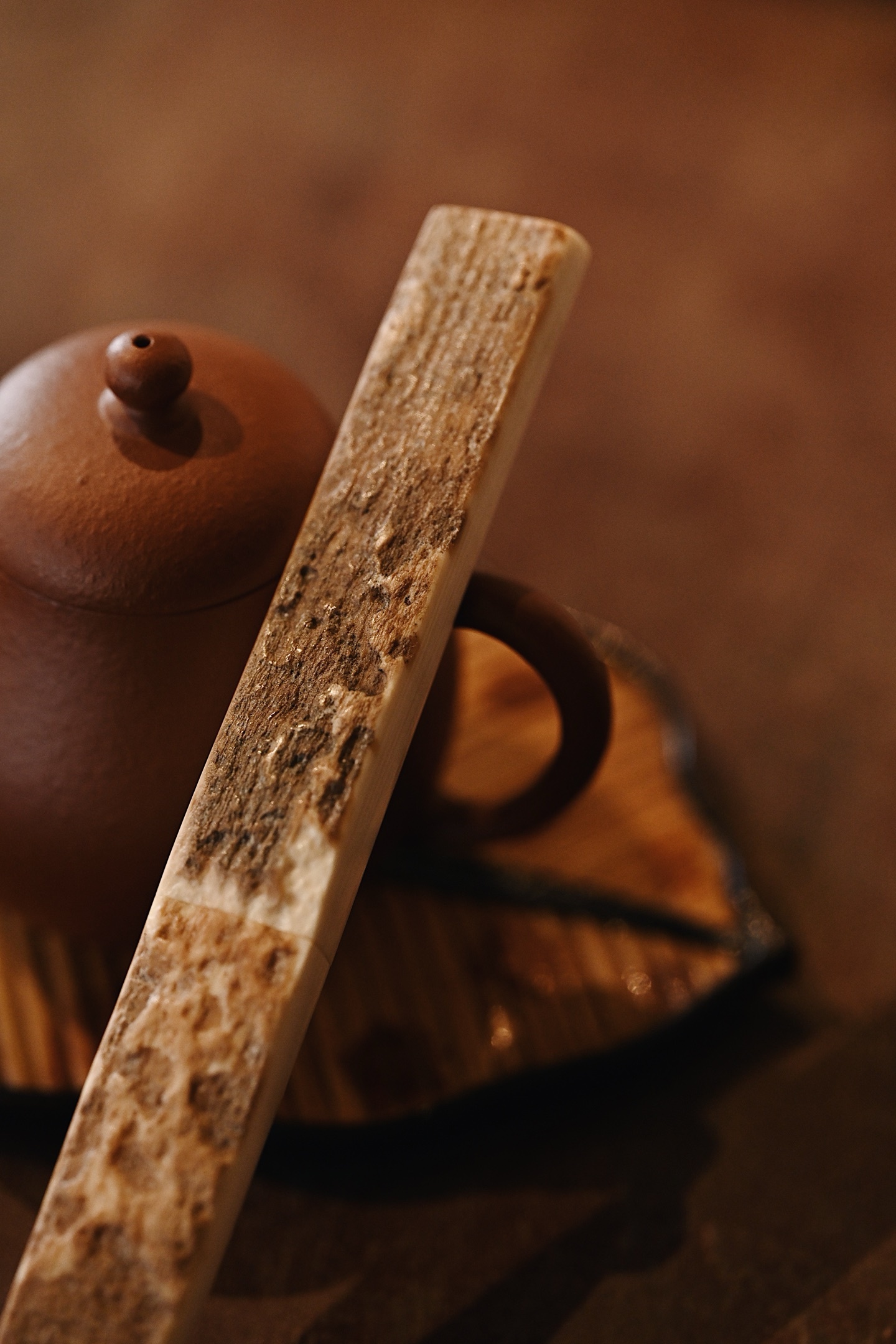 质地细腻,色泽清润,天然皮壳纹理变化多样,素雅无雕,自然隽永,恰合中式茶席极简之美。
