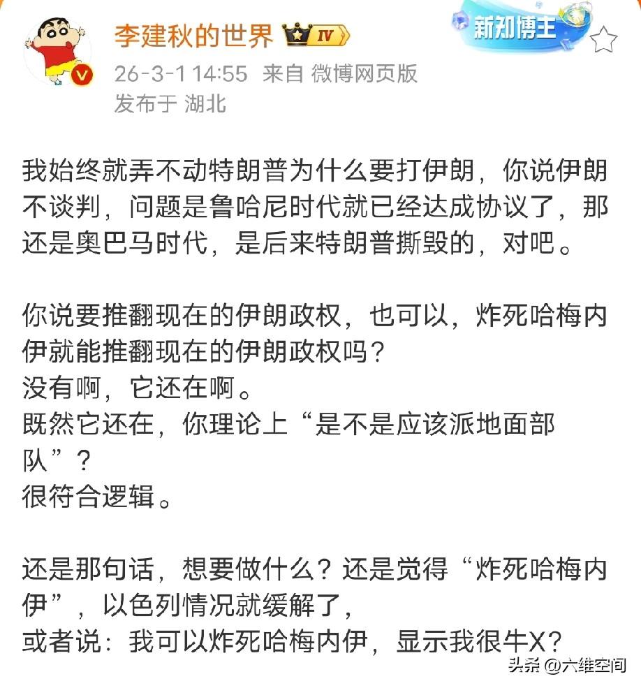 接下来就看美国派不派地面部队进入伊朗了,如果不派地面部队进入伊朗,世俗派真的没有机会取代宗教派,川普只是赢了一个面子,把哈梅内伊炸死了而已,因为宗教派的革命卫队依然在,世俗派就没机会,革命卫队也不会主动去支持失去派,本身就不太可能,革命卫队本身就很有钱,凭什么给自己找个亲西方的上司呢! 小编我是强烈支持美国派地面部队进入伊朗,真正跟伊朗分个胜负,免得让某些群体争来争去,有的人说川普赢了,有的人说川普没赢,我觉得川普应该干脆点,直接派地面部队进去,凭借美军压倒性的优势,肯定能打赢革命卫队的,这样川普也就赢得没有争议了!
