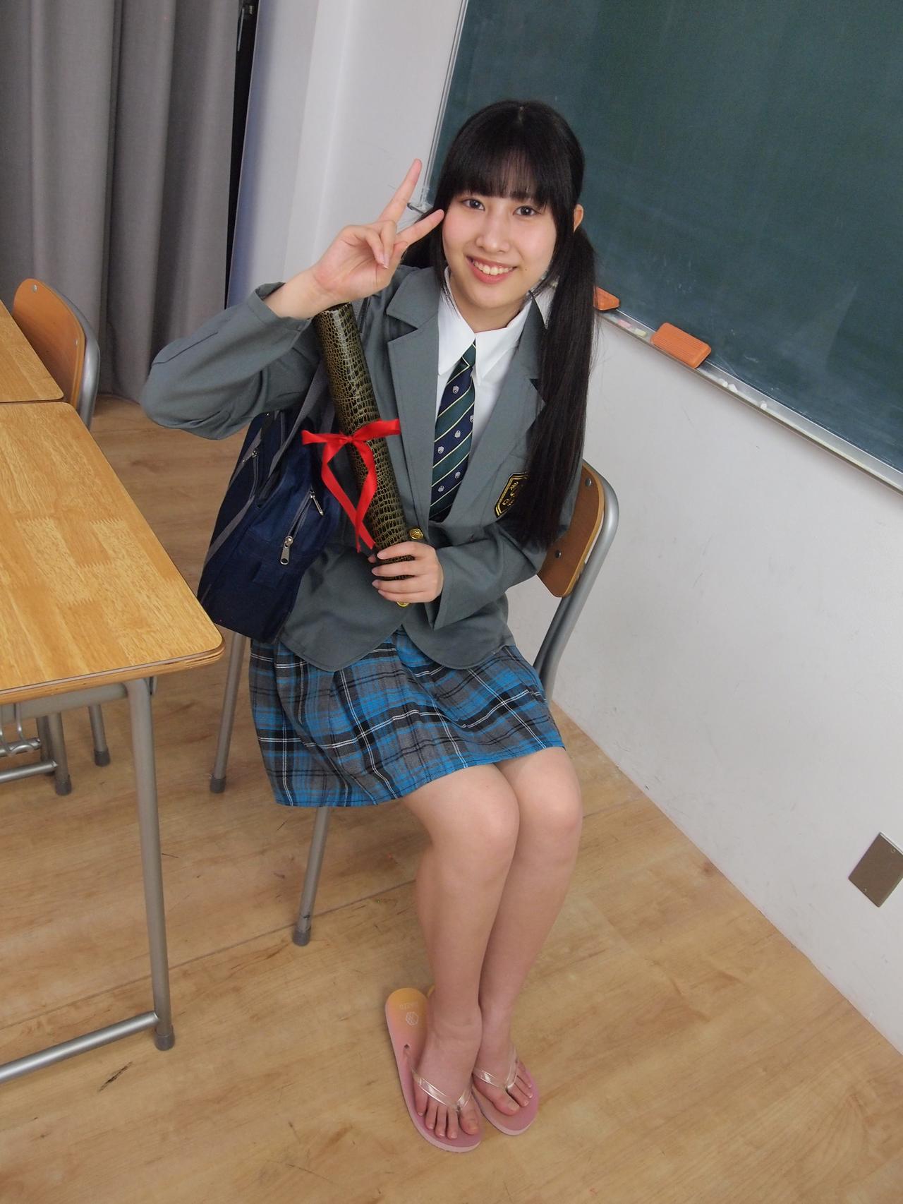 一个穿着校服的女孩坐在台阶上