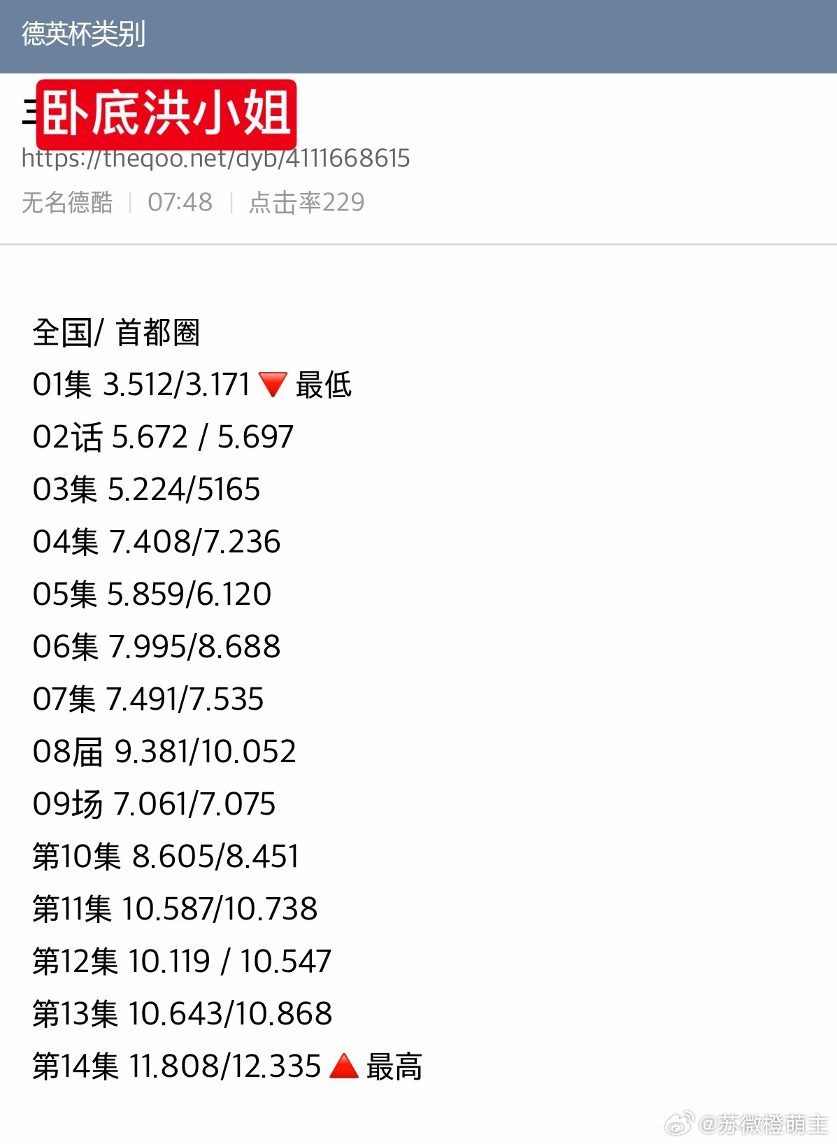 260301昨晚的收视率~两部剧都打破自身最高收视率tvn 《卧底洪小姐》 第十四集 11.808创造自身最高收视率!!!!!!! 朴信惠 高庚杓JTBC 《未婚男女的效率恋爱》 第二集 3.328韩志旼 朴成焄
