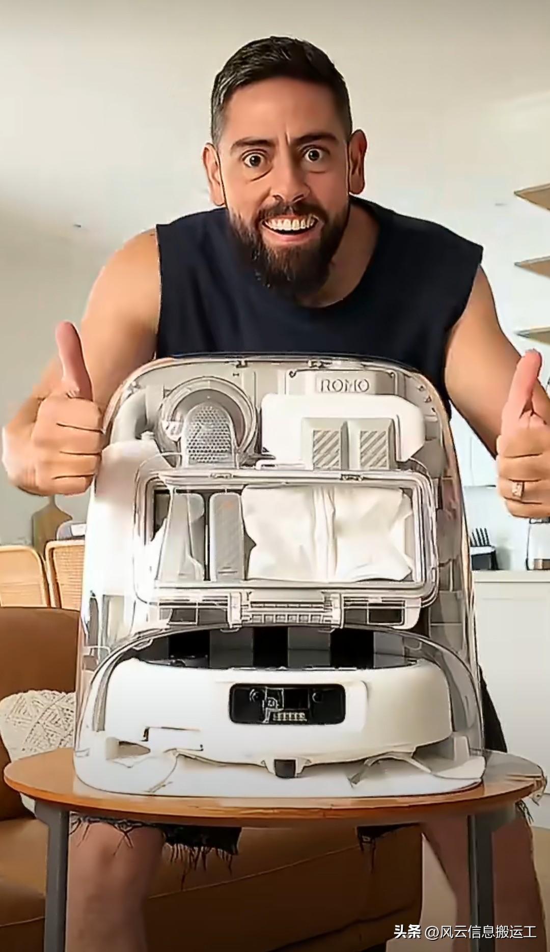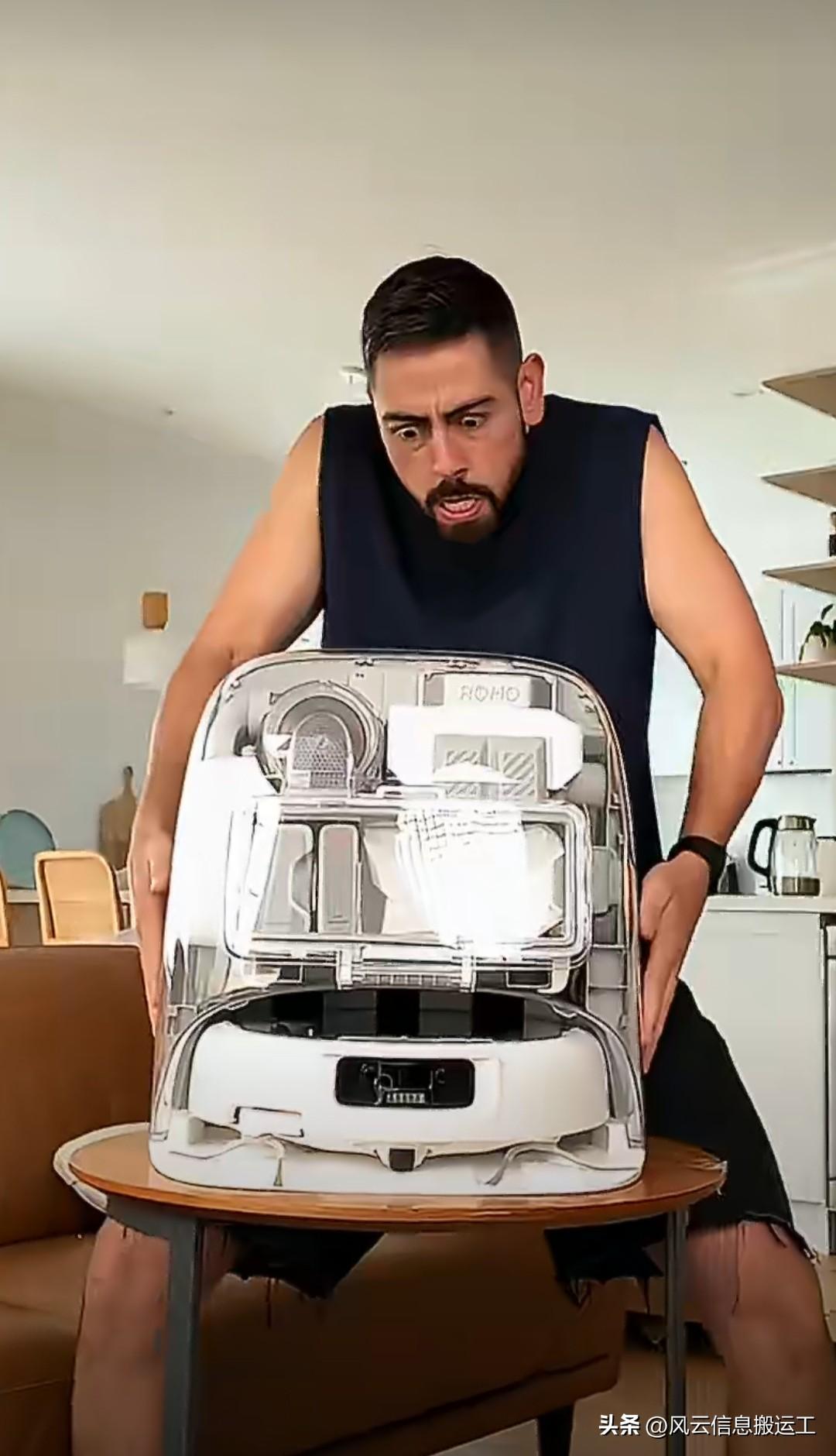 外网知名拆箱网红拆箱了最新款大疆的扫地机器人,最后效果很满意!
