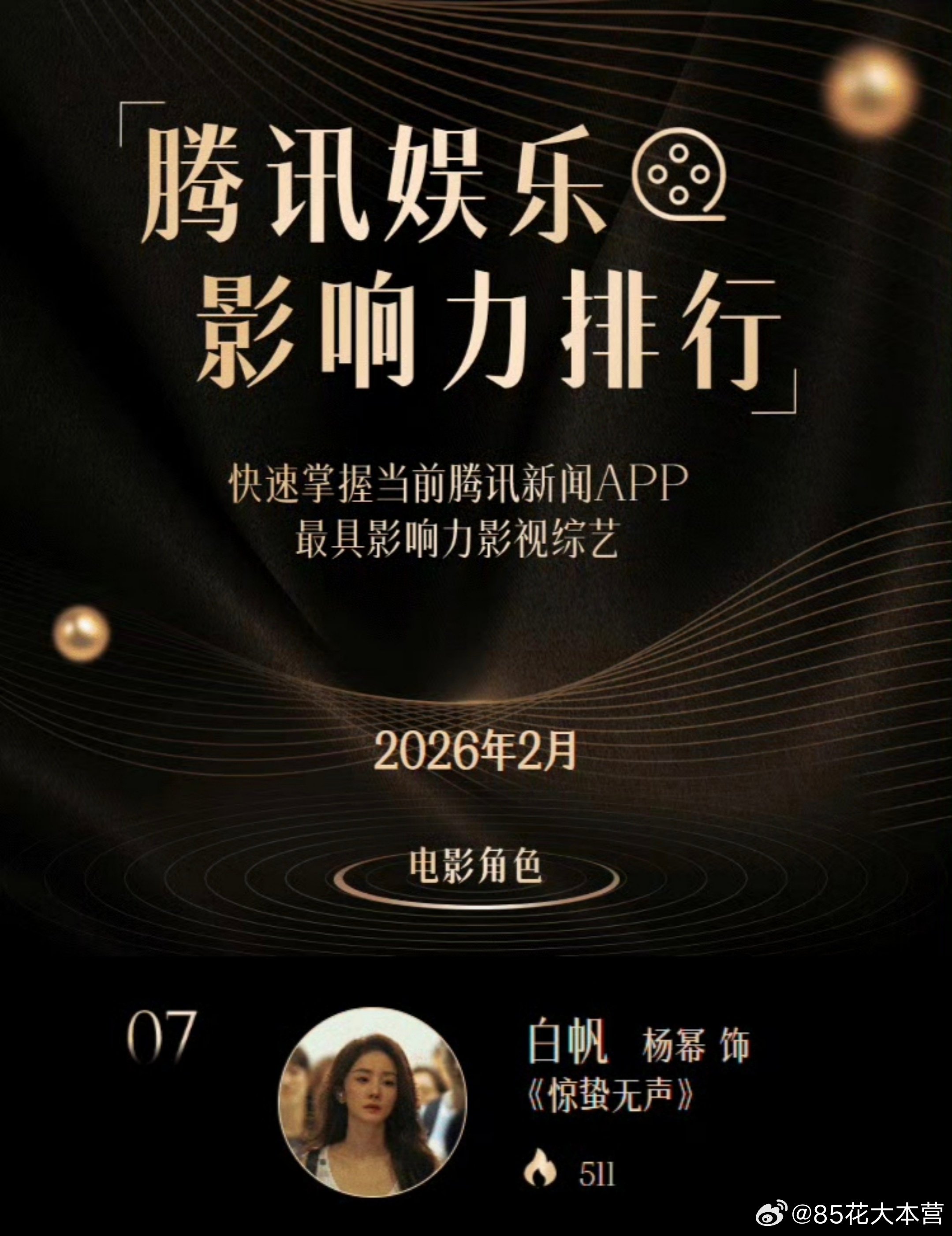 腾讯娱乐影响力排行——2月电影角色榜~杨幂《惊蛰无声》白帆上榜!有效电影角色持续