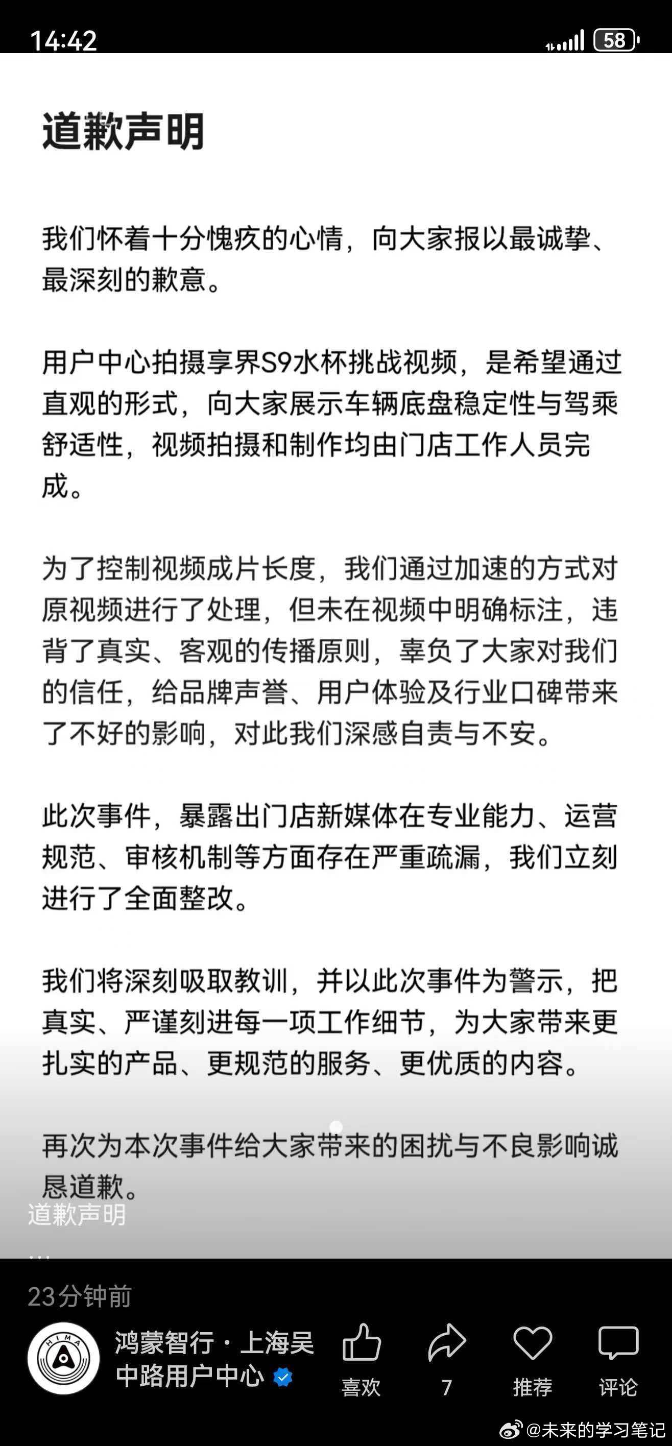 昨天经销商门店发布违规视频的事情,算是有了具体的结果: