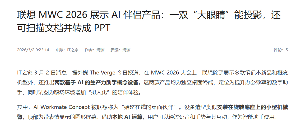 主流头部大厂mwc基本都是集中在AI更重要是,很多AI产品已经实际落地在生活上真