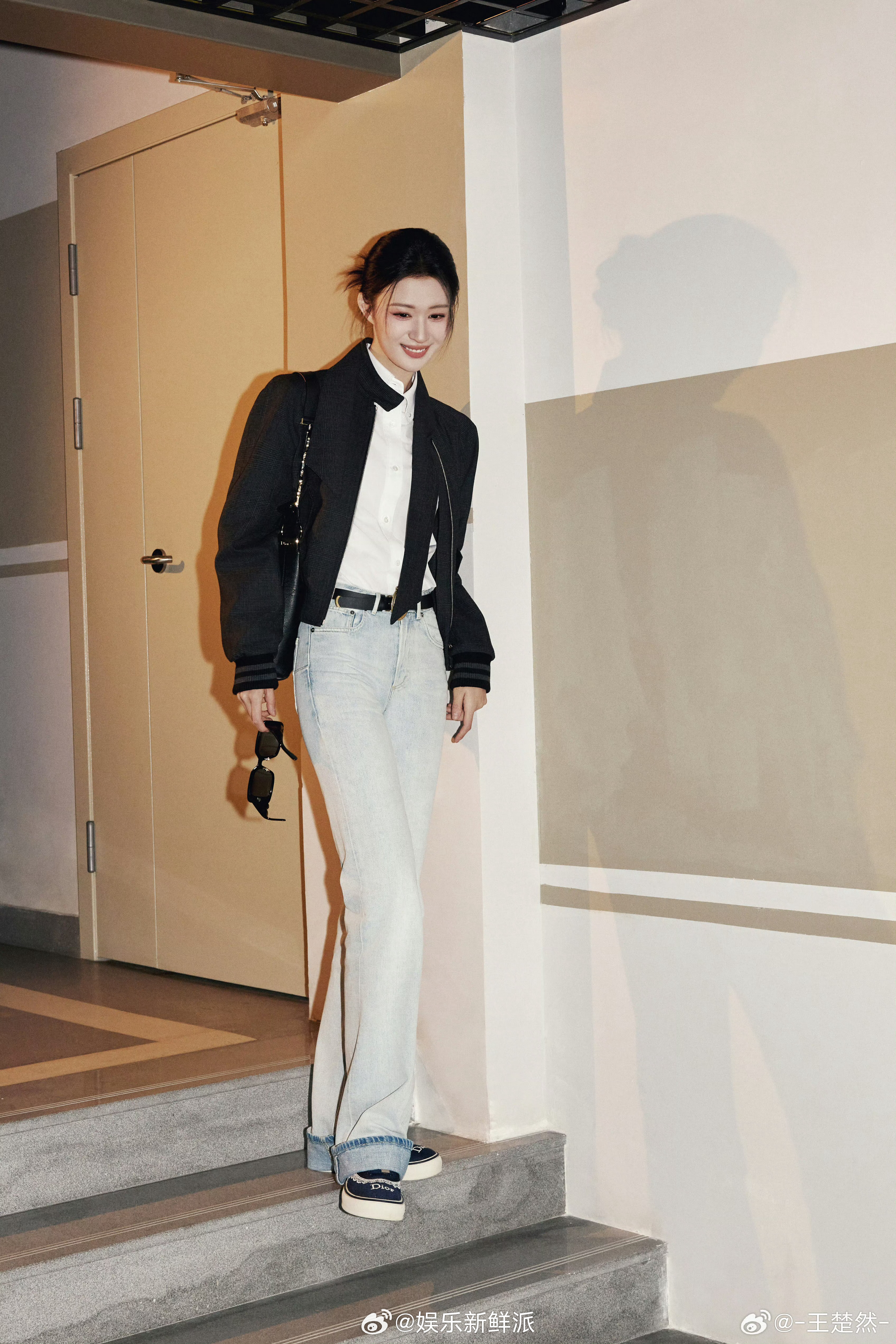派酱安利王楚然老钱风精准拿捏老钱风,高智感穿搭也是轻轻松松。整体搭配以黑白色为主,淡蓝色的牛仔裤增添一些俏皮休闲感~这难道就是传说中的商务休闲风吗,上半身商务,下半身休闲嘻嘻嘻。