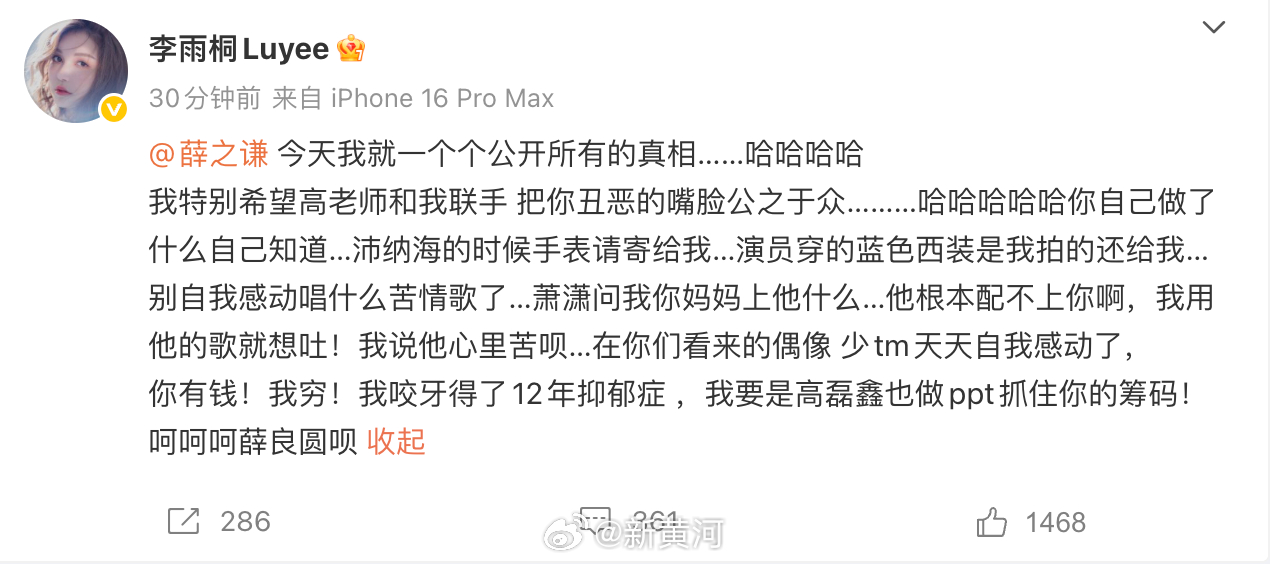 我刷到过她 她在直播间一样聊过老薛开不开演唱会之类的问题 她也说了老薛对她很好 也说了性格不合才分开的 但是令我费解的是她一边说老薛好另一边又黑老薛