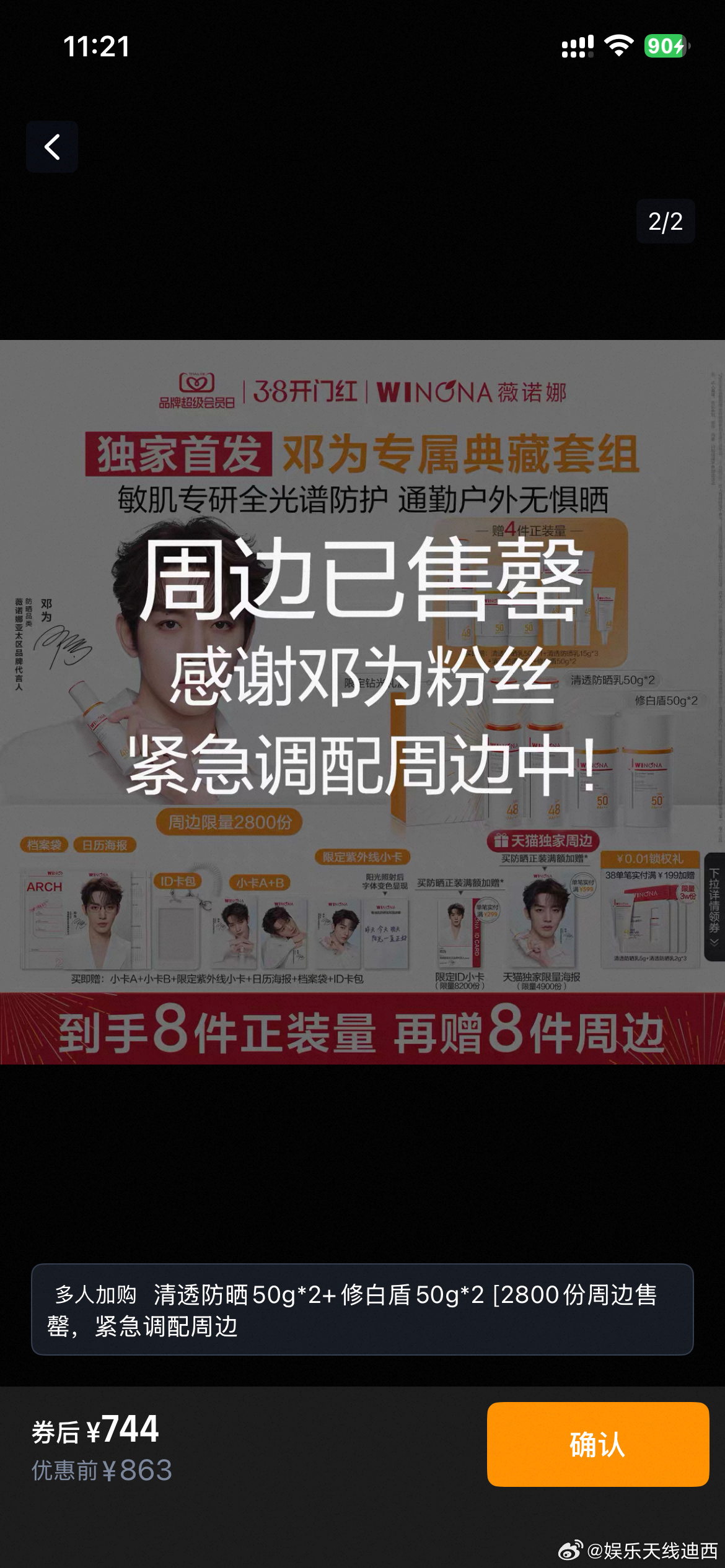 今天邓为新商务薇诺娜官宣第一天,开售不到一个半小时主推专属典藏套组就已经全部售罄