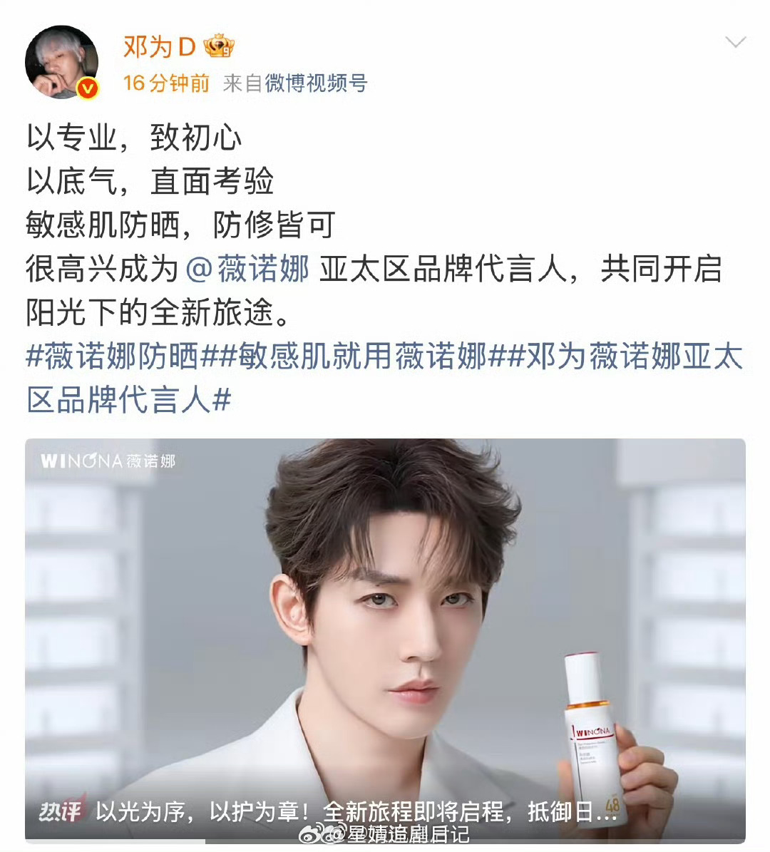 邓为 薇诺娜亚太区品牌代言人