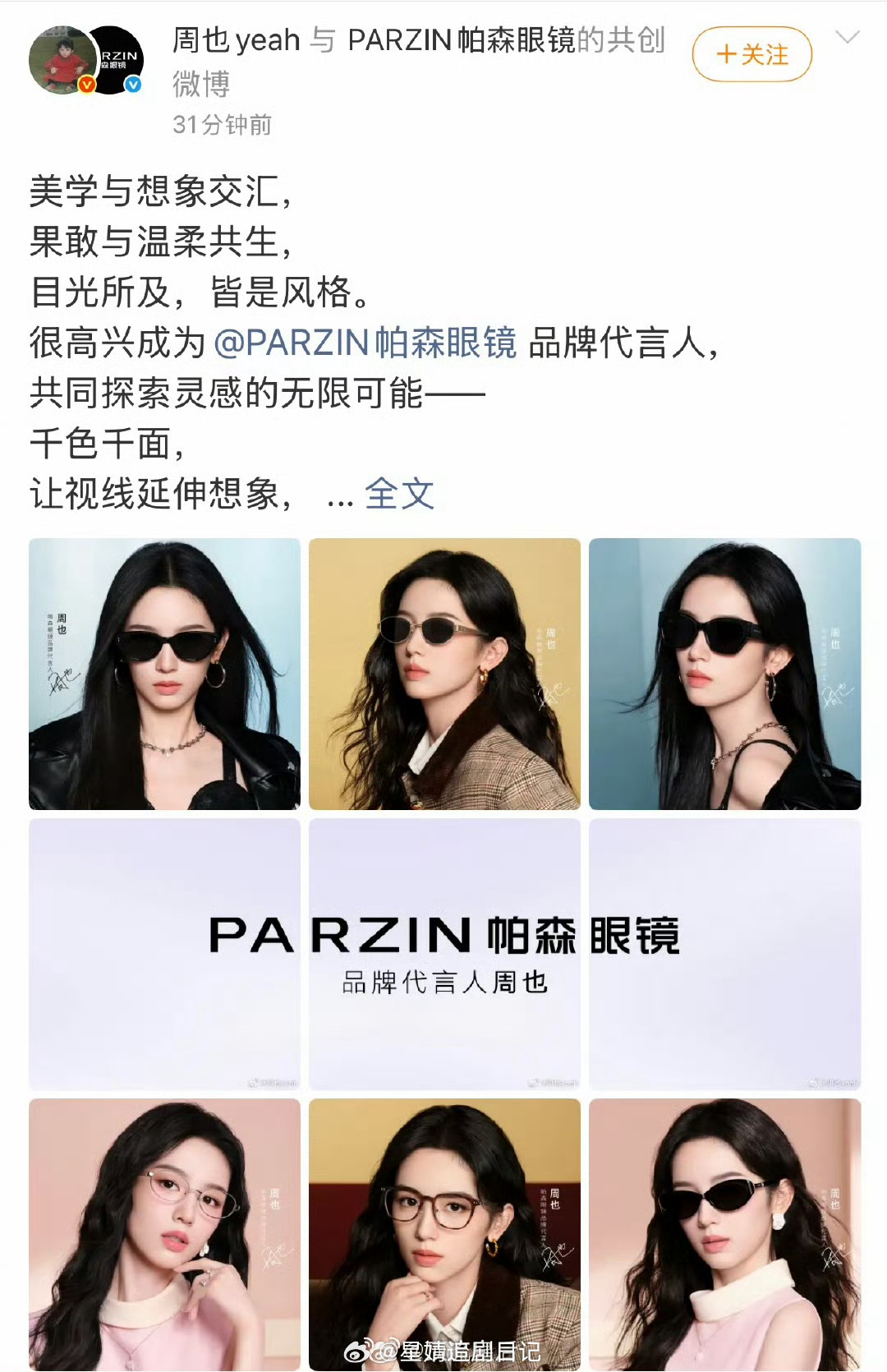 周也 帕森眼镜品牌代言人
