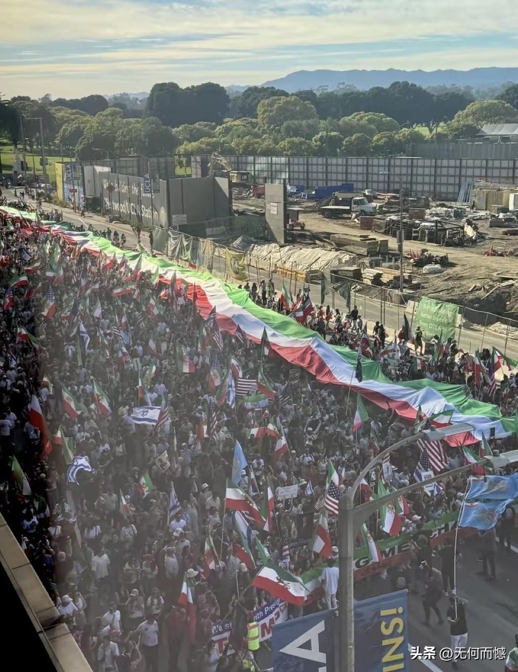 洛杉矶街头出现了这么多人,看样子得有十几万,这些人的长相有点像伊朗人,他们举着旗帜,也不知道是在抗议还是在庆祝,不过看他们的面目表情,好像是很开心的样子,这到底是怎么回事儿呢?看来不懂英语真是一个短腿,啥也看不明白,干着急,没办法!