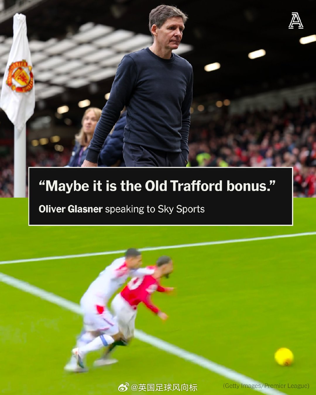 【曼联主场哨?格拉斯纳质疑红点套餐】曼联2比1水晶宫,水晶宫主帅格拉斯纳,在赛后新闻发布会上,质疑裁判做出红点套餐的决定,并表示这可能就是曼联主场哨。