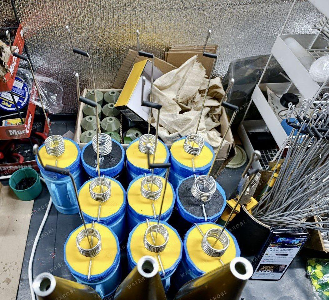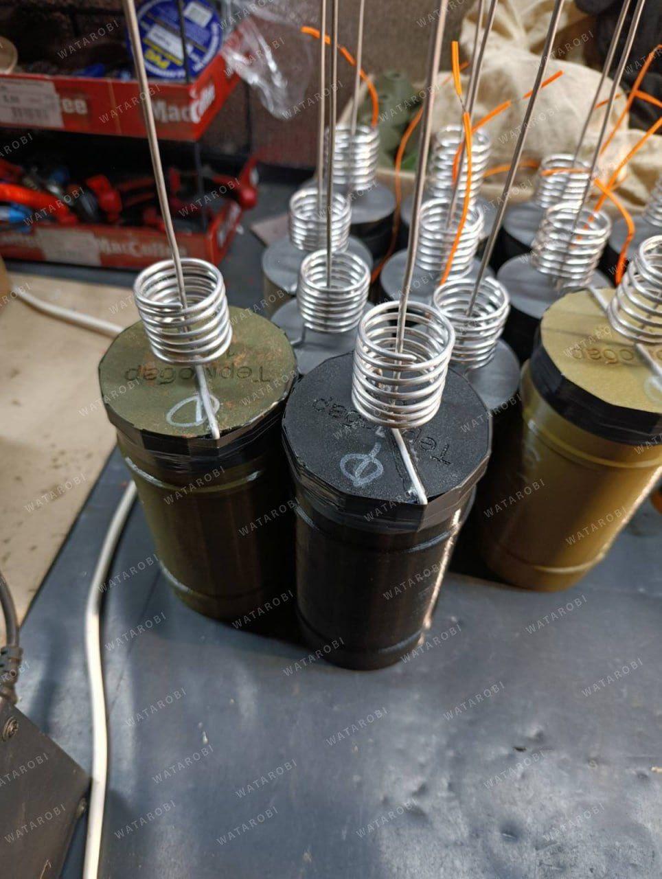 乌克兰制造的碎片式FPV弹头。有些弹头显然在熔化的TNT炸药中混入了金属碎片(注意电饭煲!这不是做饭),而另一些则在外层隔间内装有切碎的钢棒。接触导线会在撞击时接通电路,从而引爆电雷管。这款威力强大的乌克兰FPV弹头体现了FPV杀伤力不断增强的趋势。该装置包含切割钢棒碎片元件和C-4炸药。电子引信带有延时引信和接触线,用于控制电雷管。