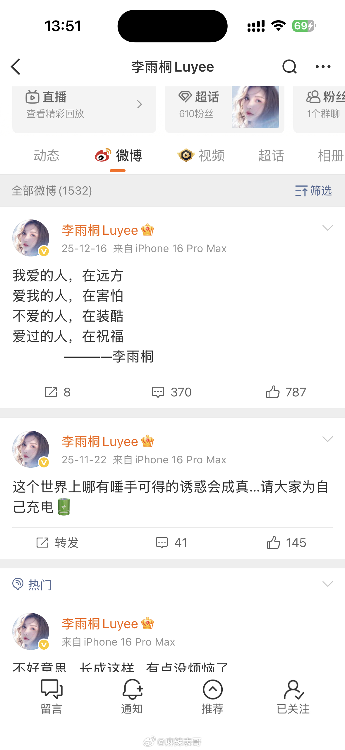 李雨桐疑似删博李雨桐这是删博了还是隐藏了,上午喊话