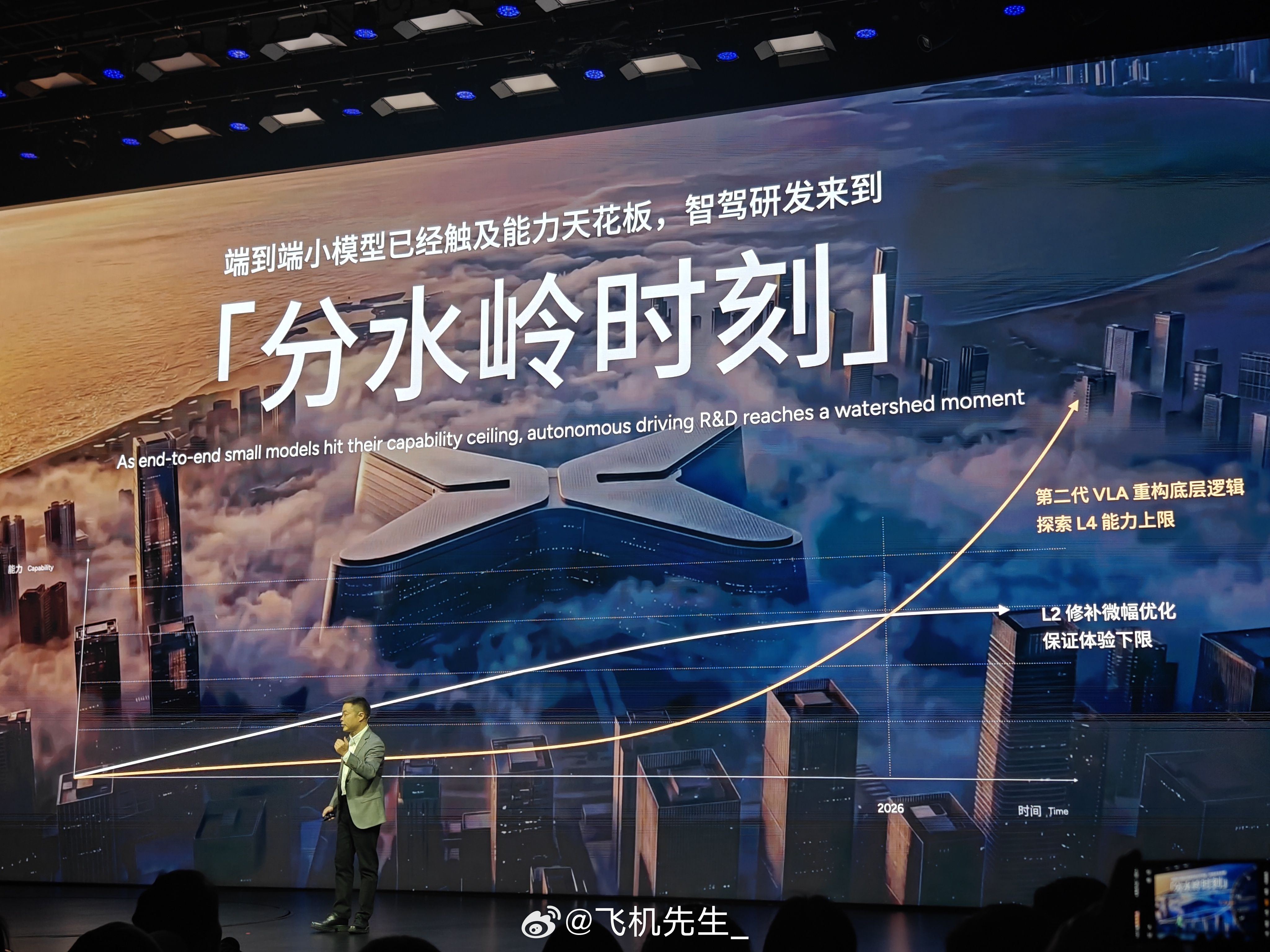 第二代 VLA 就是直接跨越到 L4 ,是一套全新的架构,不是在原有的架构上修修补补,意味着是和 L4 架构同源,也是这个架构的第一个版本。