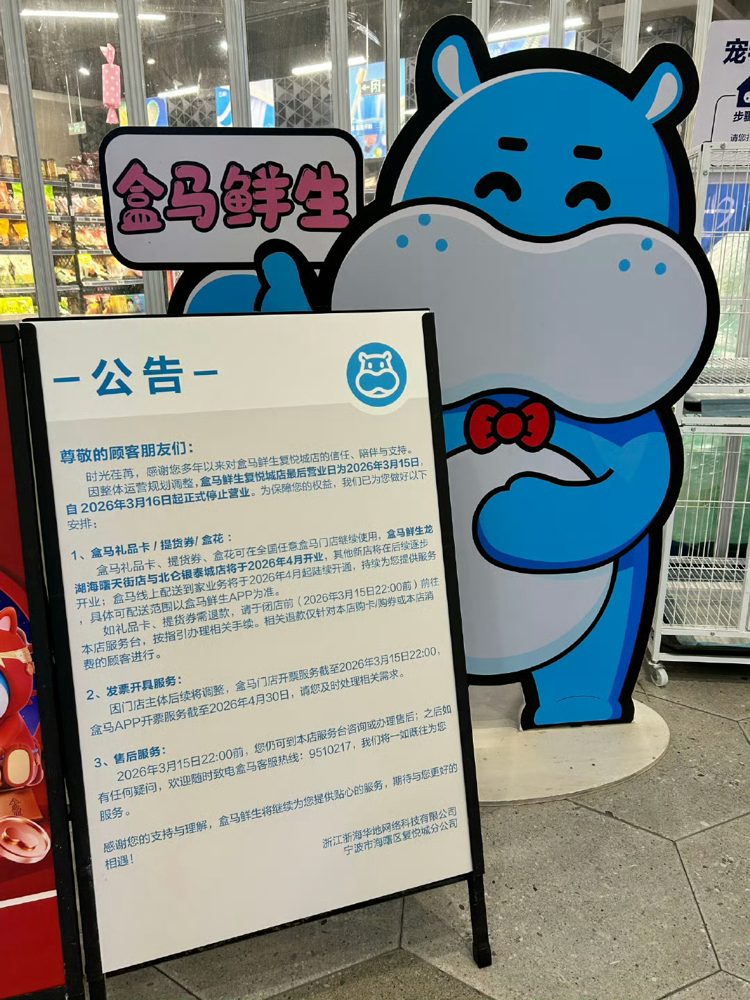 宁波盒马大调整7家店月底全关