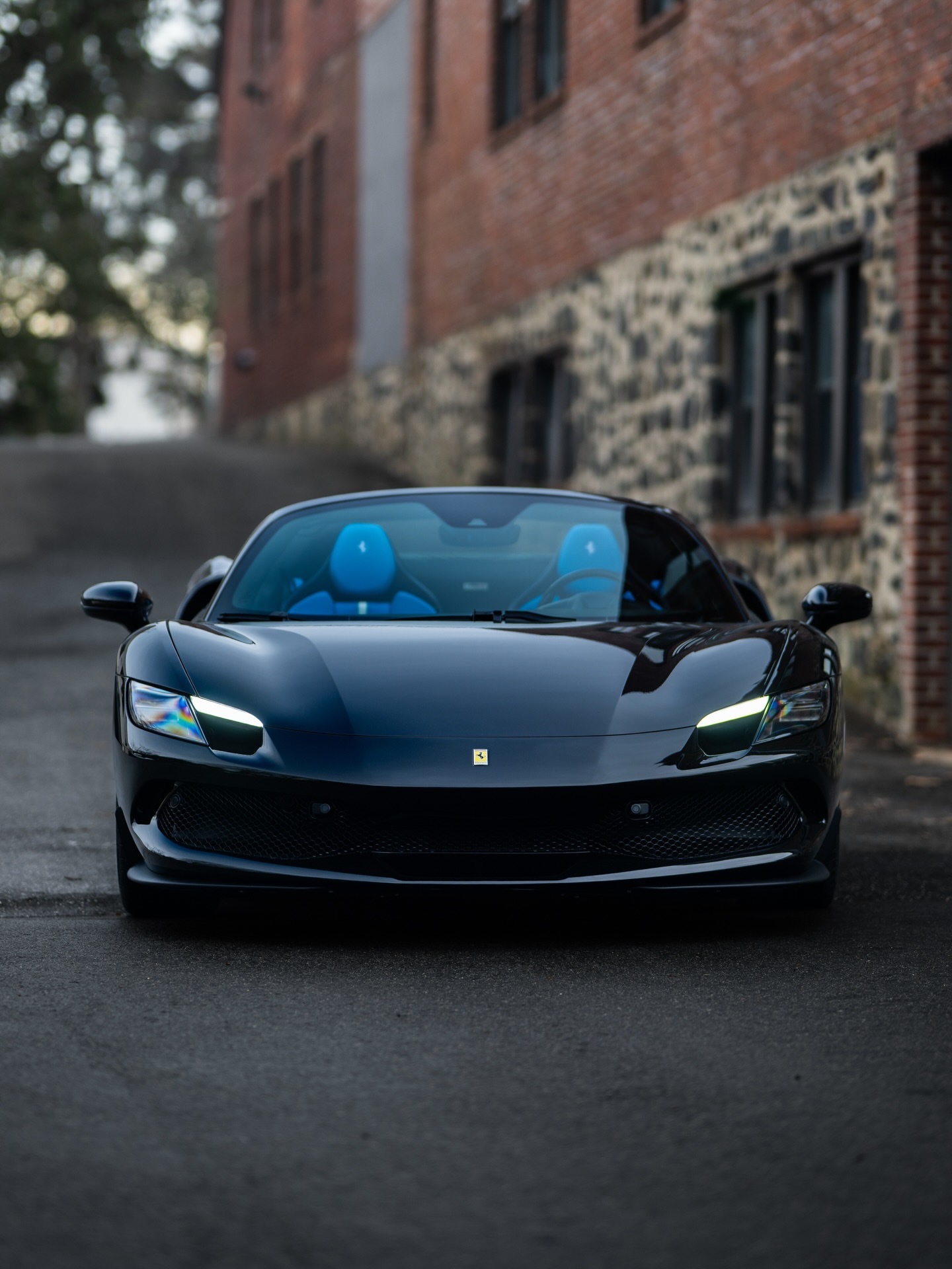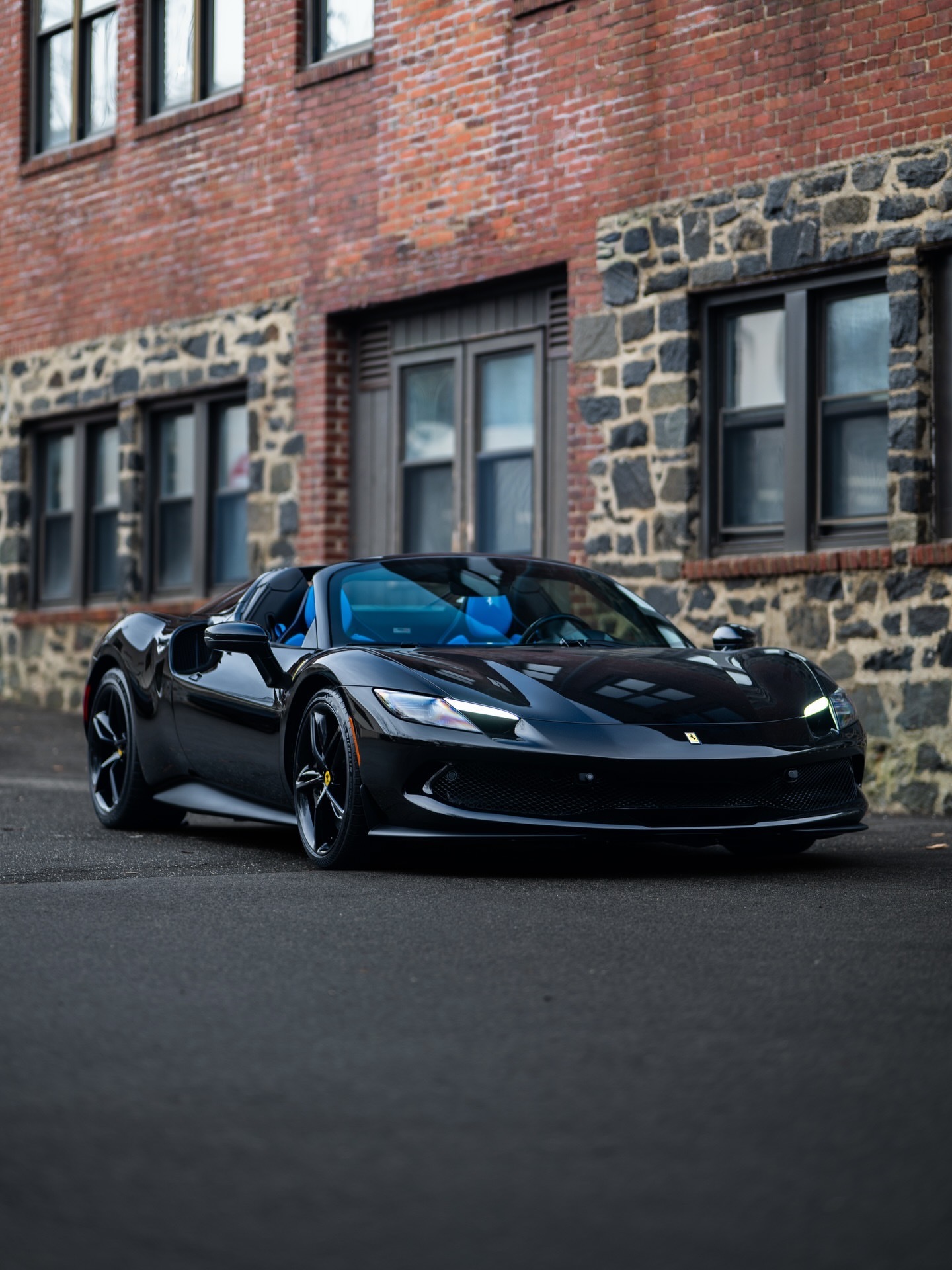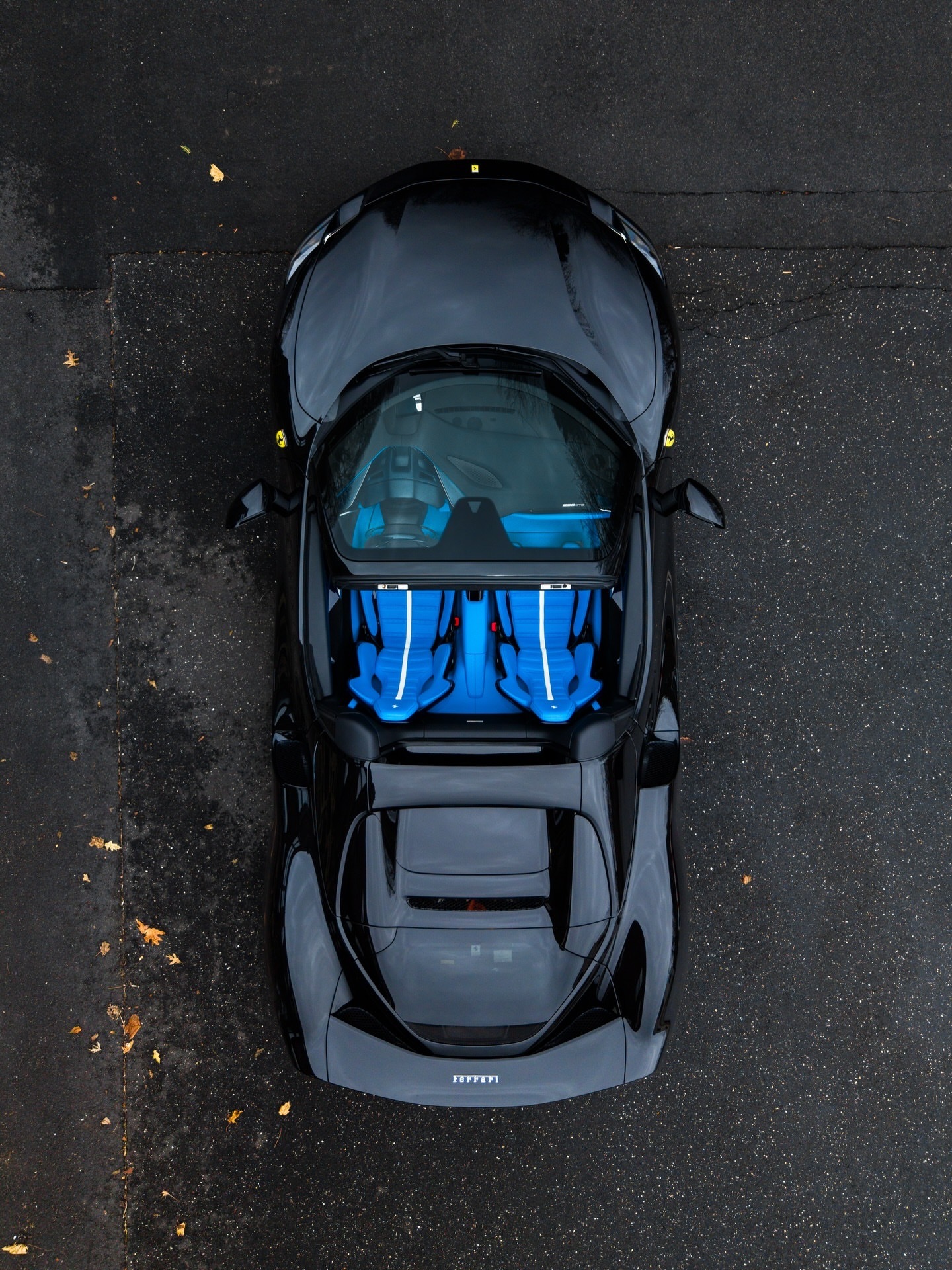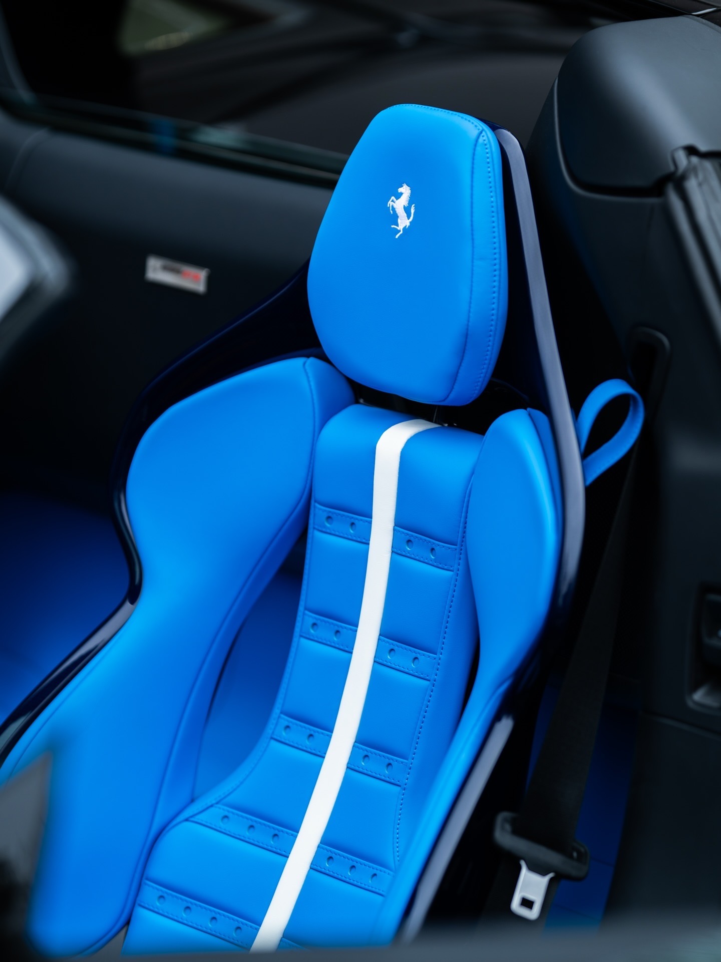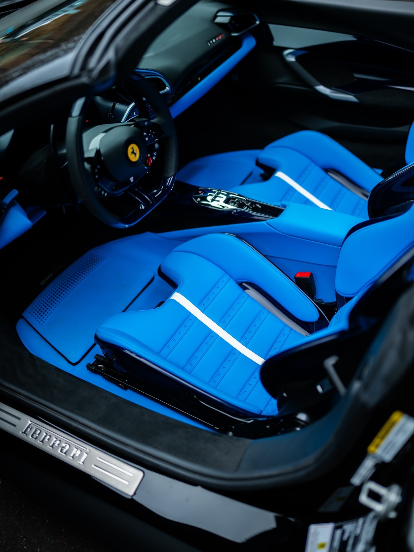 法拉利296 GTS,该车采用全黑色外观和婴儿蓝皮革内饰,296 GTS全车选用蓝色碳纤维材质。行驶里程仅77公里。