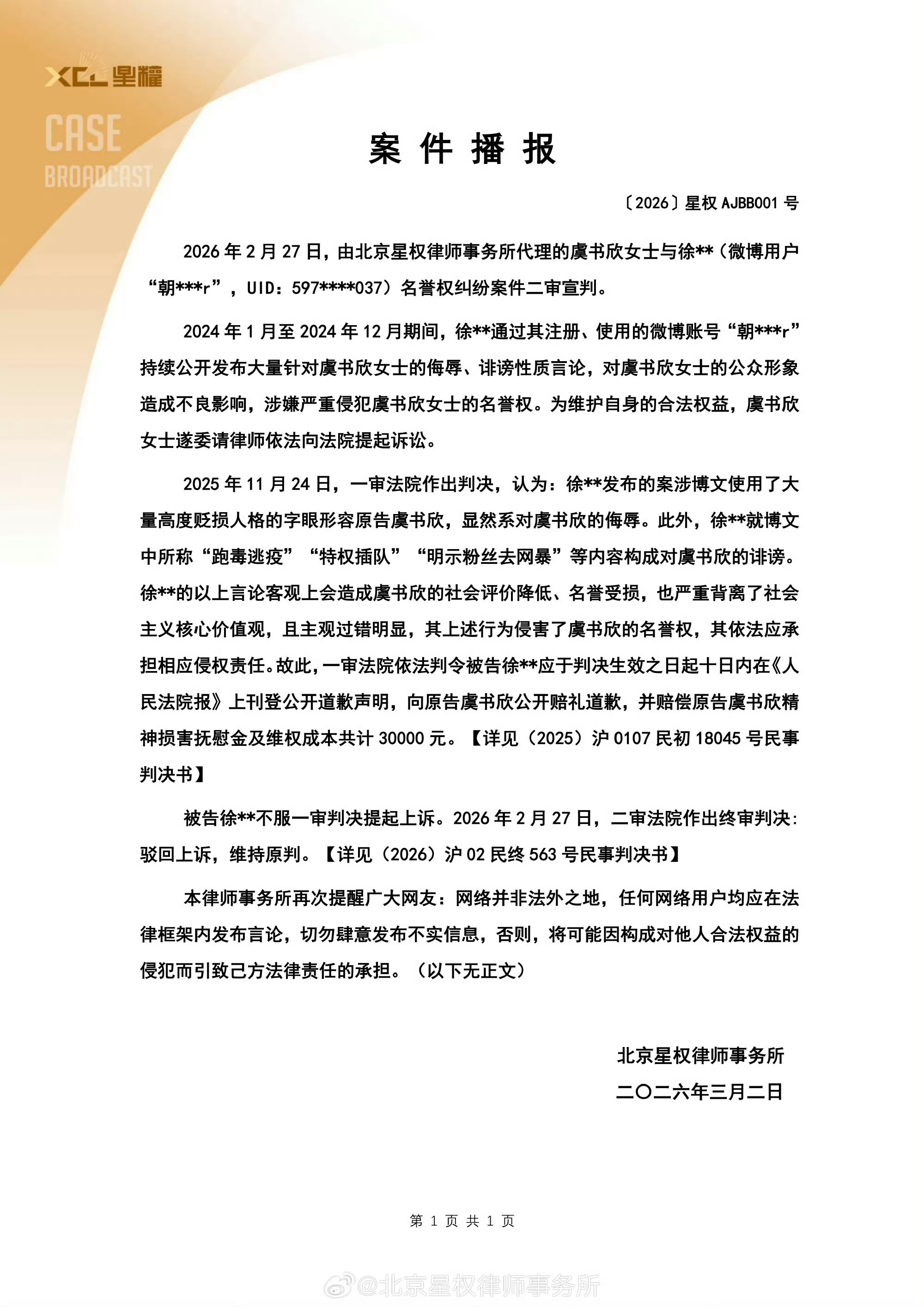虞书欣父亲新增开庭公告我只知道素人合理维权👊🏻👊🏻不知道有些媒体何意味呀