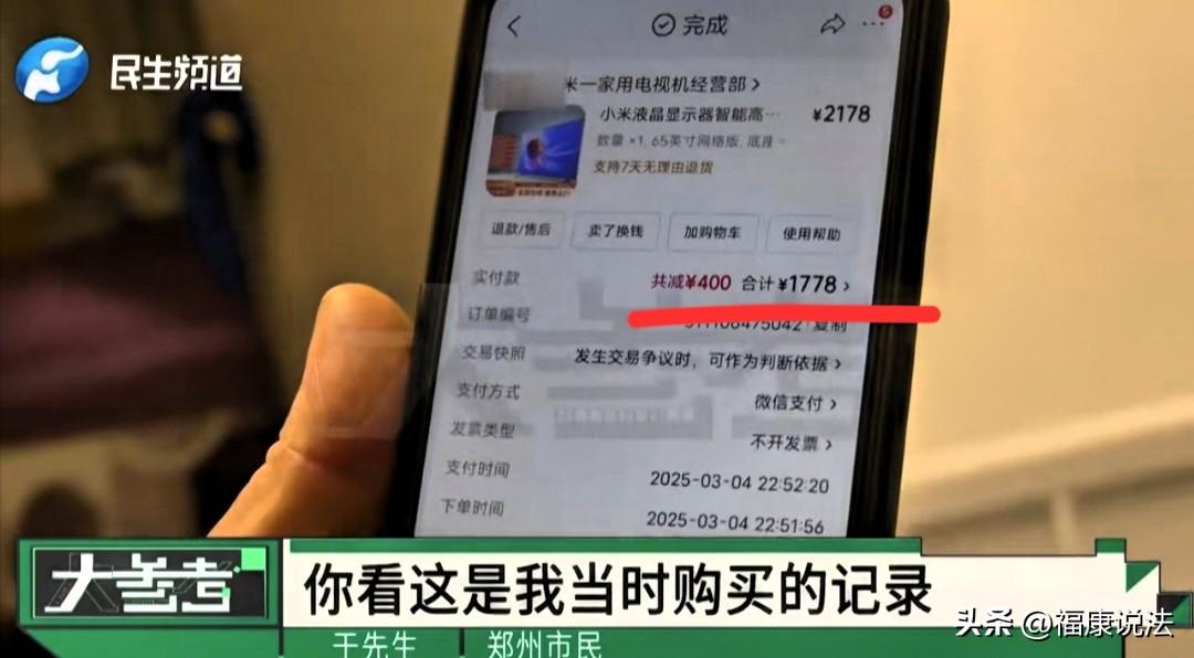 河南郑州,男子花1778元买了一台65寸小米电视,用了不到一年黑屏了,他找售后维修,才发现电视是7年前的二手电视,维修也得1000元左右,男子火冒三丈,我明明买的新机!他找商家要说法,不料,商家跑路,平台让他自己找商家协商去,男子无奈找了记者帮忙,竟发现商家玩了一个套路,才让自己的掉坑里了。 于先生指着家里的大电视气愤的说:我现在看到这个电视就心烦! 原来,2025年3月份,于先生家的新房装修,买了一个65寸的小米电视机,去了杂七杂八的优惠,实际花了1778元。 当于先生看了电视不到一年,电视出了问题,右边有黑屏的情况,画面根本看不清楚。 于是,他给售后打电话说了情况,希望能给看看,售后派人上门检查后说,是电视屏幕里面有一根灯条坏了一半,灯条需要全部更换。 于先生一看能维修也行,就问对方,维修得多少钱呢? 对方告诉他,维修费用大概需要1000元左右吧。 于先生一听就火大,维修要1000块钱,我买电视才花了1778多,这家伙都快赶上买电视的价钱了。 因为电视黑屏,于先生为此非常烦躁,新买的电视用了才不到一年啊。 万万没想到,售后维修人员告诉他一件更让他气愤的事——你这电视是旧机器。 于先生直接惊呆了,不对呀,我买的新电视,怎么可能是旧的呢?他简直不敢相信自己的耳朵。 然而,官方售后告诉他,这台电视机在2018年5月3号已经起保了,而且在外省出售过了。 于先生这个窝火啊,新买的电视机竟然成了二手电视,这搁谁都难以接受。 于先生回想,当时收到电视机后,包装是新的,保护膜都是新的,自己也没想到是旧机器啊。 他翻出购买记录,商家宣传页面上并没有标明是二手电视。 然而,记者帮他查看是,从主页点进商家详情介绍里,一直拉到尾部末端第5条有一行字写明:“电视均为测样机、库存机、翻新机,外观95-99新……” 另外,第6条还写了:“官方已过保,质保由本店质保二年。” 于先生看到这个介绍也是懵了,他说我只知道我买的是新电视啊?我并不知道我买的是二手机啊。当时自己也没看到那个七拐八拐的隐藏介绍啊。 然而,当于先生再联系商家时,已经联系不上了,就连产品信息也不见了。 而后,他找平台,平台说他们也联系不上商家。 于先生非常生气,自己是因为信任平台,才在上面买了家电,除了电视、还有冰箱、洗衣机什么的,偏偏电视是二手的。 可一出了问题,平台却让他自己去找商家协商,于先生郁闷,你平台都找不到商家,我一个消费者去哪找他啊? 于先生气的说,我现在感觉我自己像个冤大头。 没想到平台给他发了信息,表示这个案件已经结了,让于先生自己找商家处理。 于先生只好求助记者帮忙。 记者联系了平台方,问他们消费者找不到商家了,那售后我们去找谁? 平台客服表示,商家联系不上,这边会给您处理的,会给一个解决方案,因为这个电视机还在质保范围内。 而后,记者对于商家页面没有醒目标识产品是二手的一事和平台提了建议,对这个特殊商品应该明确标明,对方表示会转达。 最后,于先生说:要不是这次黑屏,自己永远不知道自己买的是二手机,这次确实是花钱买教训了。 有人说,任何东西都是有成本的,一味的追求低价那肯定是有问题的,这就是贪小便宜吃大亏。 啥也别说了,就是图便宜,一分价钱一分货,十分价钱买不错。 记住了,便宜无好货!贪图便宜的结果。 这事儿搁谁身上都得气炸,商家这种做法实在是太损了,把关键信息藏在详情页最底部的第五、六条,这明摆着专门等着那些不习惯拉到最后看细则的消费者往里跳。 于先生哪能想到在正规平台上,竟然能买到早在大几年前就“起保”的旧机器。 这种“套路营销”确实让人防不胜防。 更让人寒心的是平台的态度,消费者在平台上买东西,交的是一份安全感,结果出事了,商家一关店,平台就说联系不上,让消费者自己去捞人,这不就是推卸责任吗? 从法律方面,商家这种做法构成欺诈吗? 《消费者权益保护法》第55条规定:经营者提供商品或者服务有欺诈行为的,应当按照消费者的要求增加赔偿其受到的损失,增加赔偿的金额为消费者购买商品的价款或者接受服务的费用的三倍;增加赔偿的金额不足五百元的,为五百元。 商家把翻新机、二手机藏在页面的犄角旮旯,表面上却按新机卖,这在法律上就是典型的“隐瞒真相”,构成了欺诈。 于先生不仅有权要求退款,还能主张“退一赔三”。 至于平台,既然商家跑路了,平台没尽到审核和监管义务,就得承担连带责任,不能一句“案结了”就让消费者自己去处理。