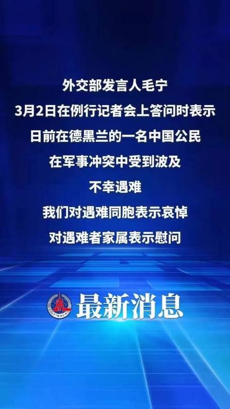 2026年3月2日,外交部发言人毛宁在例行记者会上表示,日前在伊朗德黑兰,一名中国公民在军事冲突中受波及不幸遇难,中方对遇难同胞表示哀悼,对家属致以慰问,已指导驻伊朗使馆为涉事人员及家属提供协助。