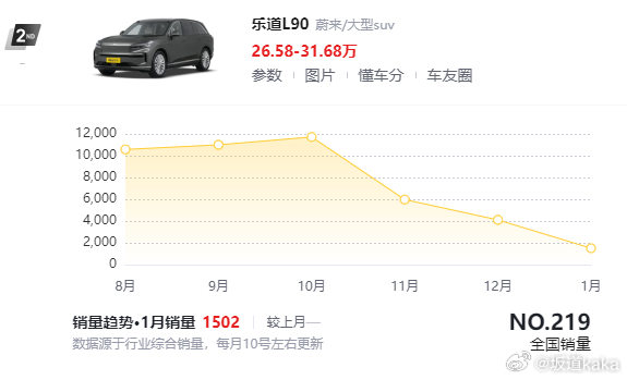 然后从11月份开始走出了一个陡峭的下跌曲线,1月份L90的销量只有1500台了,2月份大概率会更低,现在的L90就像跌到了ICU。