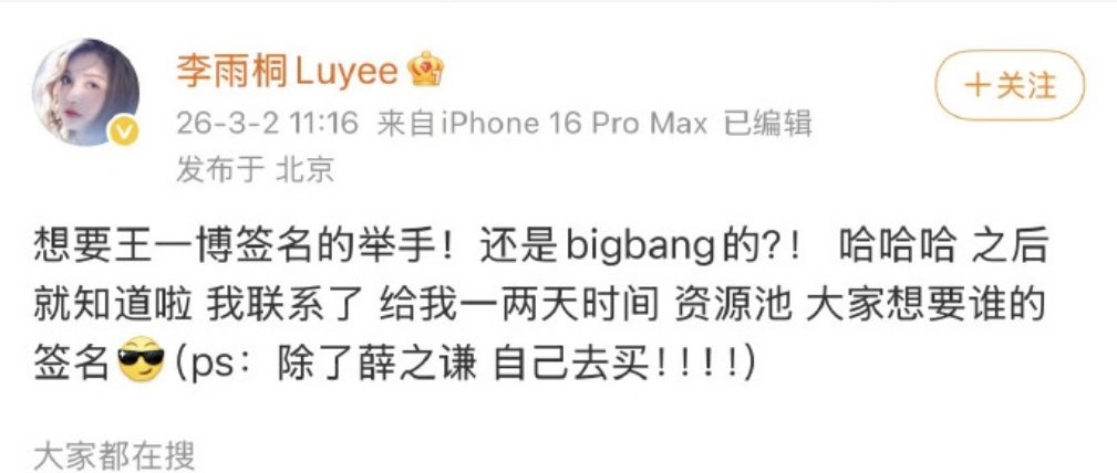 我不行了,李雨桐晒了王一博签名,被王一博粉丝发现其实是偷图 薛之谦李雨桐聊天记录