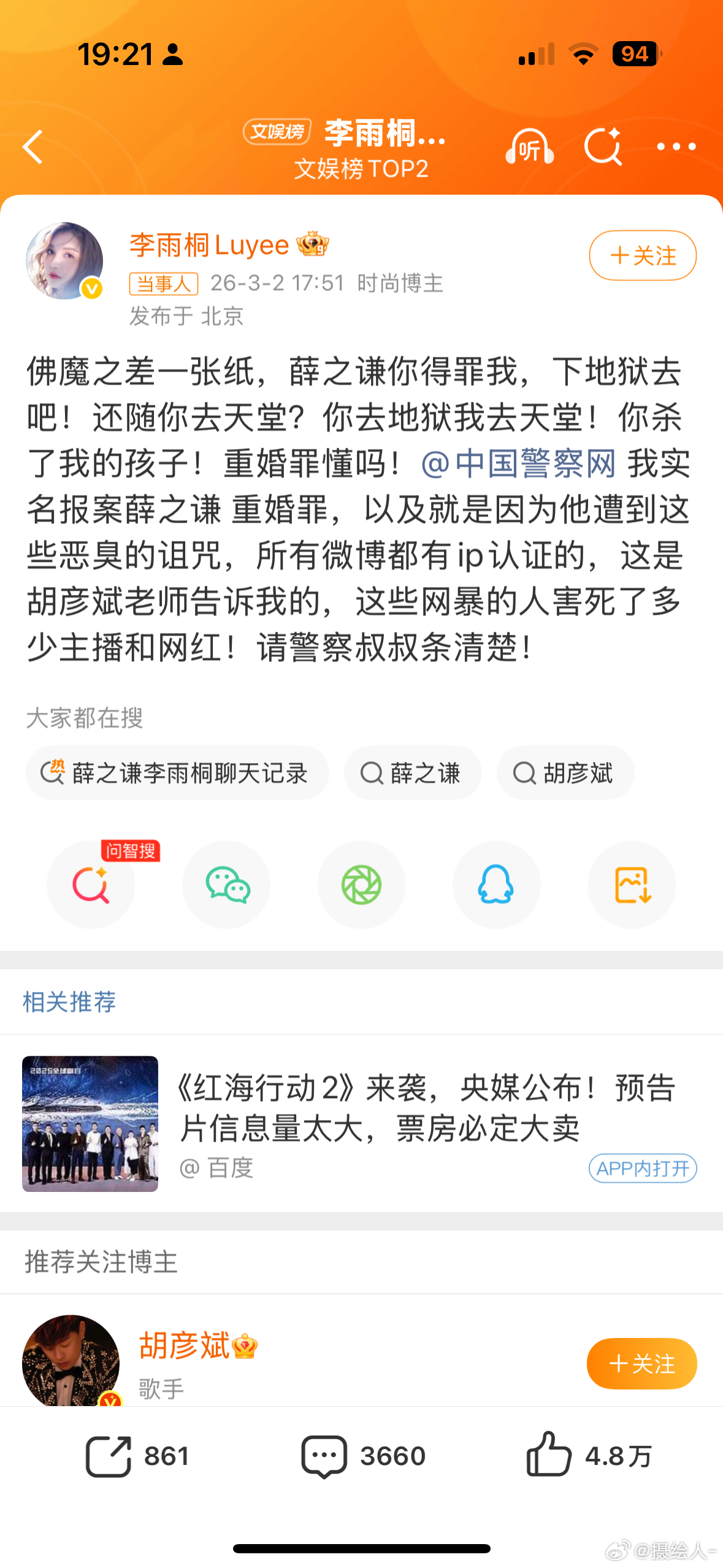 李雨桐实名报案薛之谦重婚罪发生了什么,咋还在微博上报案了呢,属地派出所没开门?这热搜都给美伊以冲突 干过去了