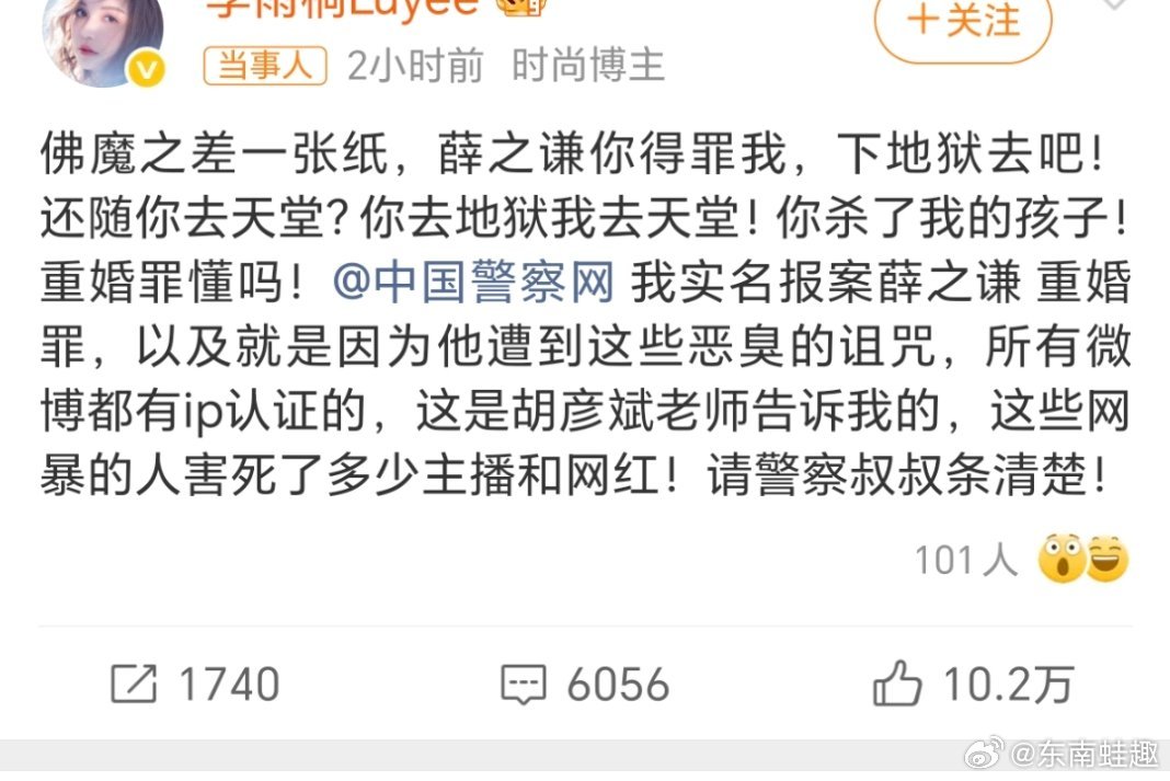 李雨桐实名报案薛之谦重婚罪还是娱乐圈玩的花!