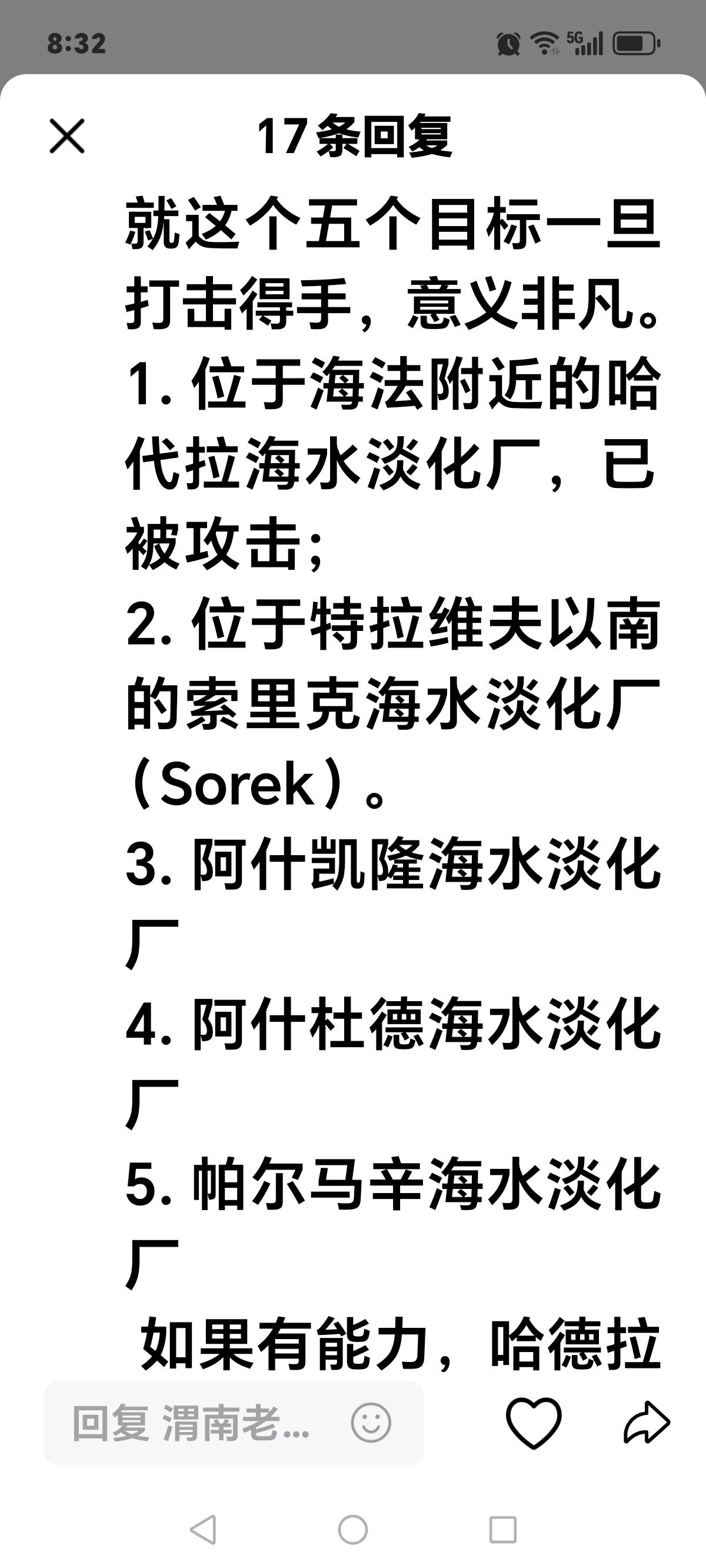 为什么这么多人都建议伊朗炸以色列的这几个淡水厂,还有那几个电厂呢?