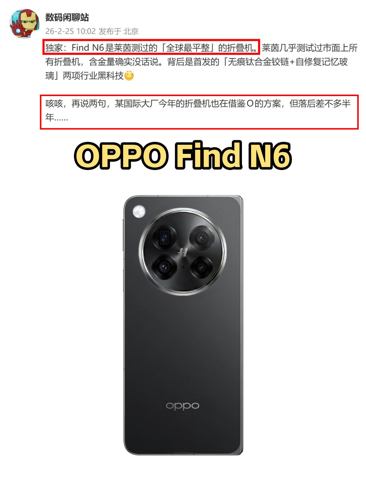 放弃幻想,接下来的手机会越来越贵... 2026年的手机市场,主基调应该就是涨价了吧?没招啊,就连苹果这种巨头,三星都给内存供货涨价100%,涨价几乎不可避免了 特别像是一些本来就贵的高端机,接下来还会更贵,像最近传的很火的iPhone Fold就是,据说价格都得2w起了,这谁受得了?今年想换手机的还是趁早吧... 这样来看,早半年发布的OPPO Find N6会香更多啊,都是无折痕,苹果用的技术就是OPPO的,早大半年用上美滋滋~ 而且看OPPO周意保发的视频,N6不仅有IP56/58/59满级防水,用了1个月内屏是几乎看不出折痕,无痕钛合金铰链+自修复记忆玻璃是有点强哦,还是莱茵认证“全球最平整折叠机”,含金量没得说 行业这个情况,就是更早买更香,更何况OPPO Find N6还很强,大家觉得呢?