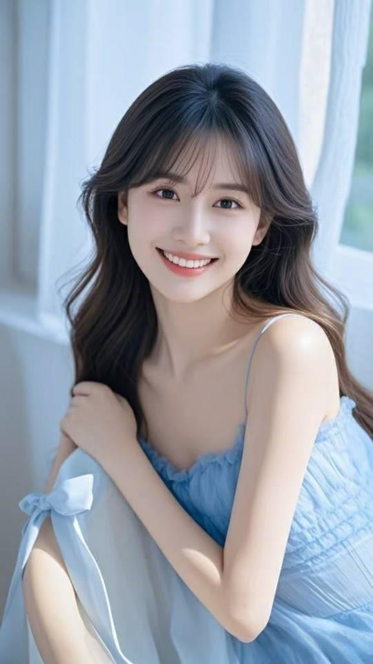 梦幻蓝裙少女,优雅气质满满!🌸✨
