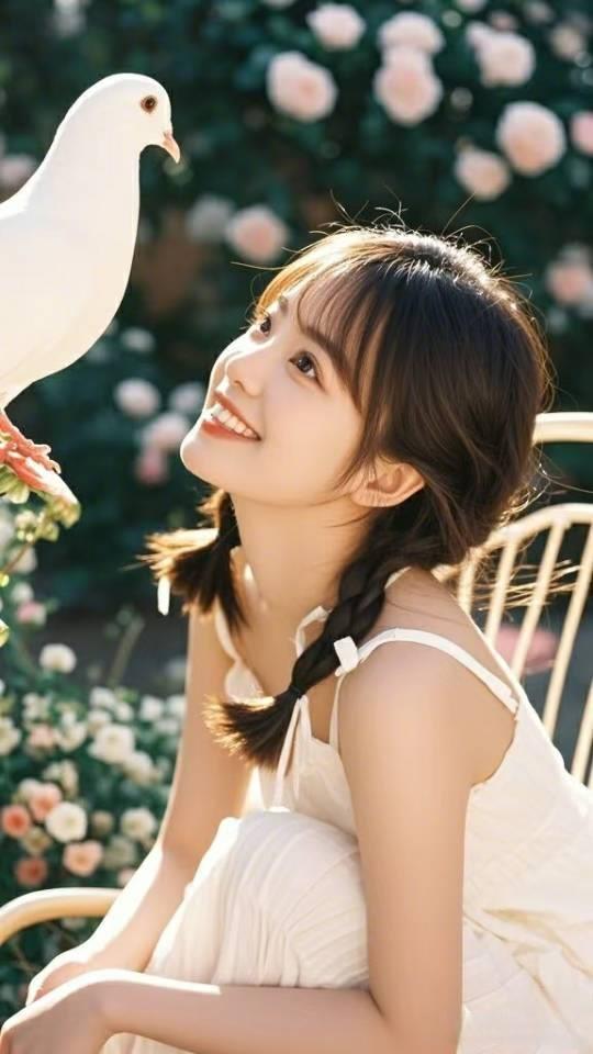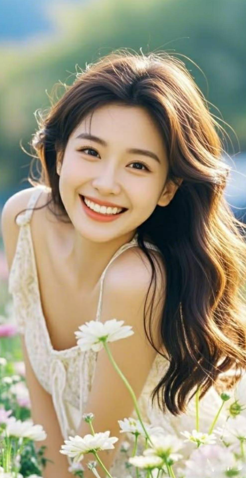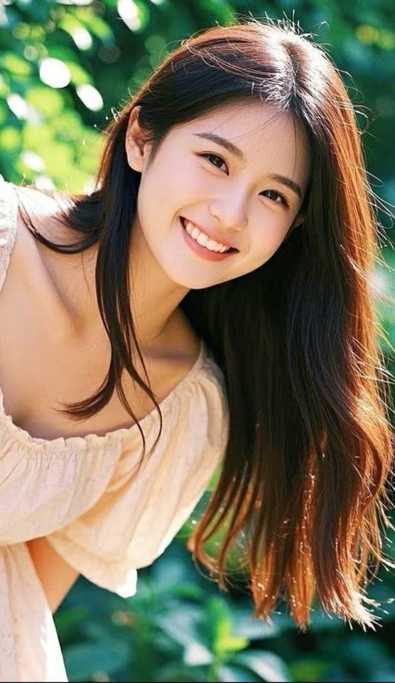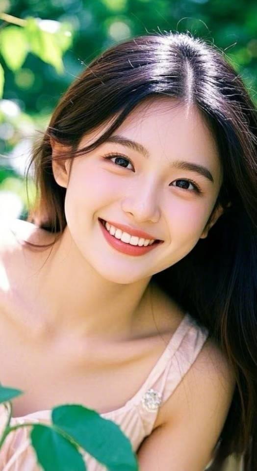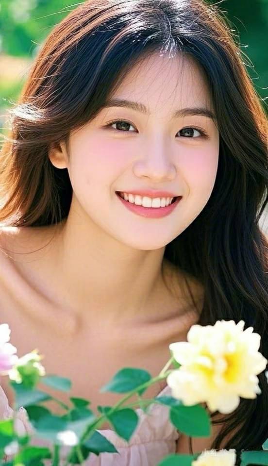 阳光明媚的午后,甜美少女在绿意盎然的背景下微笑,青春洋溢!🌞💐😊