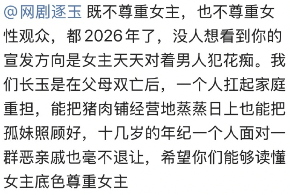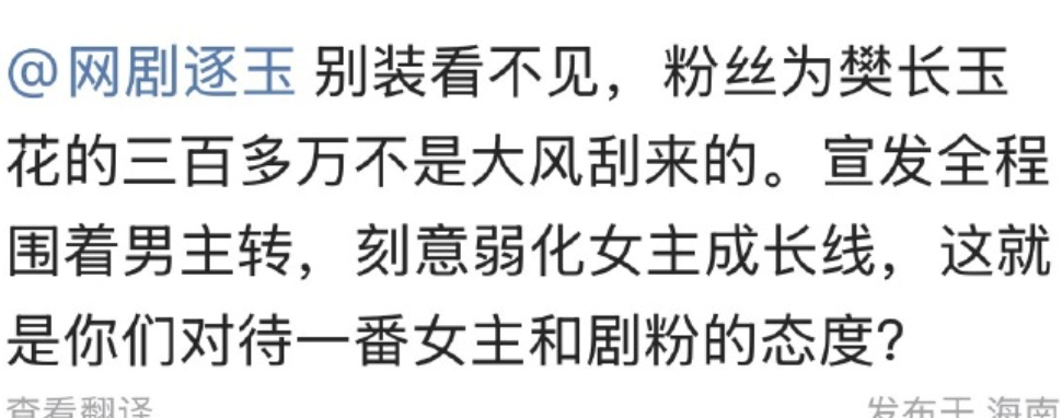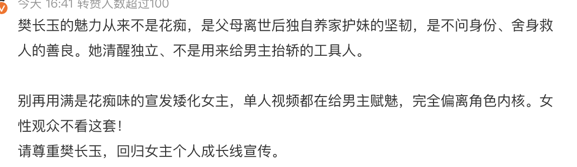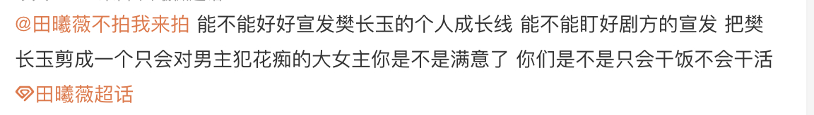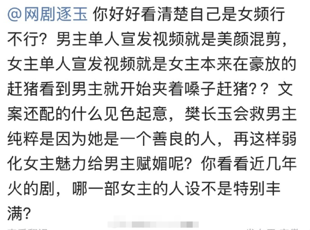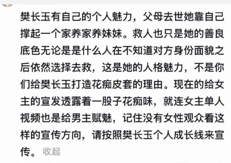 田曦薇粉丝不满《逐玉》剧宣着重刻画男方张凌赫高光人设,把田曦薇打造成花痴人设