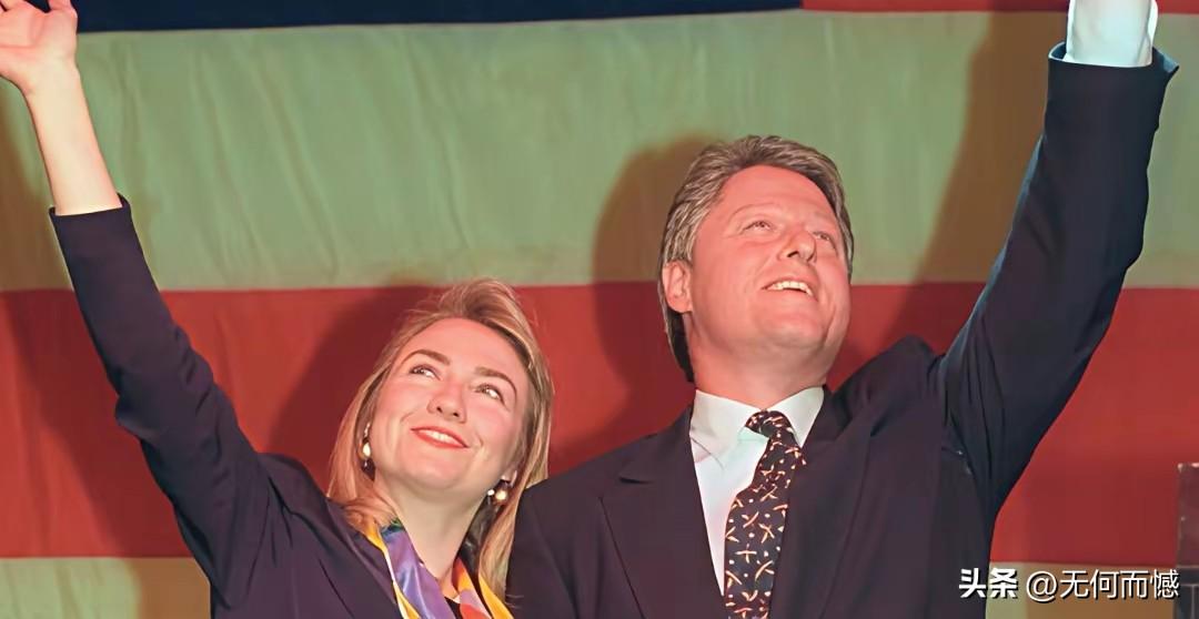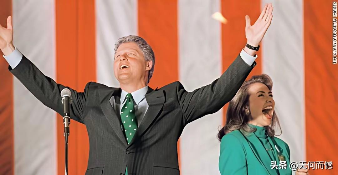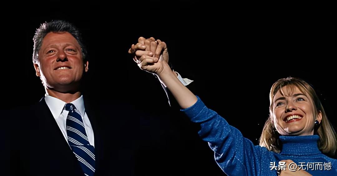 克林顿和希拉里做出的这个手势,以及脸上的表情,反映出当时他们狂喜的心情,他们的头高高昂起,他们的表情甚至有些夸张,甚至都有一些扭曲,也许当时的喜悦心情冲昏了头脑,已经不注意个人形象了,光顾尽情享受胜利的喜悦,这几张照片非常的经典,那也是他们人生最得意的时候!