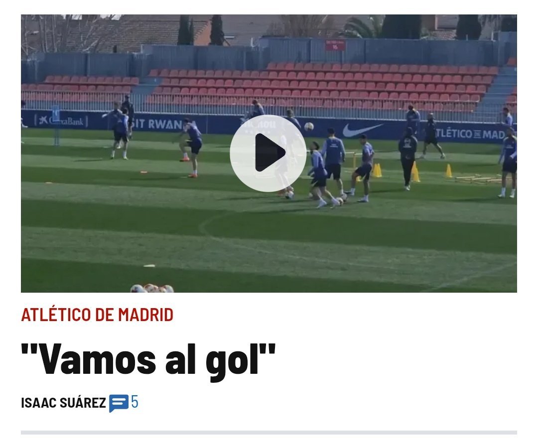 马卡报:西蒙尼今天在训练中激励他的球员们。 “让我们向进球发起冲击——让我们进球!” 西蒙尼专注于进攻训练,并与格列兹曼和朱利安-阿尔瓦雷斯进行了交谈,指示他们站在巴塞罗那禁区前。西蒙尼的想法是进球;他认为一旦进球,晋级就稳了。巴萨vs马竞巴萨至死不渝红蓝魂