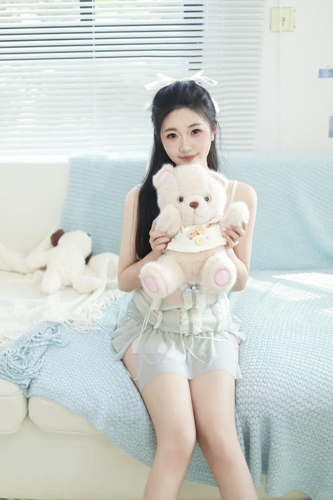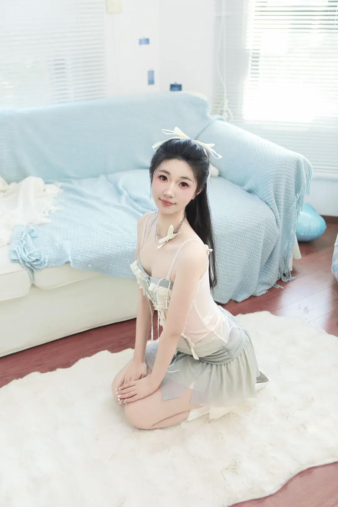 章若楠蓝色梦幻灵动公主风章若楠亮相直播现场,身着秋冬系列的淡蓝色薄纱礼裙,搭配超