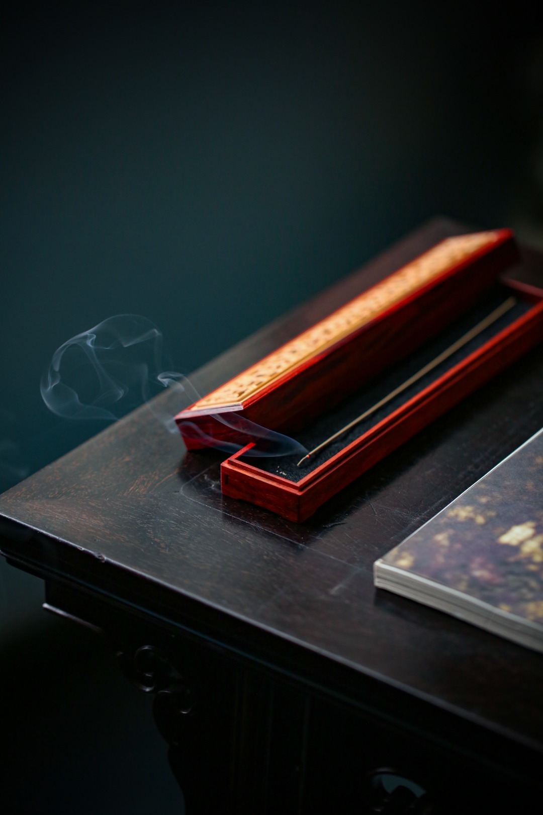 23.4*4.5*3.2 cm 重147.3g 小叶紫檀X黄杨木 | 卧香盒