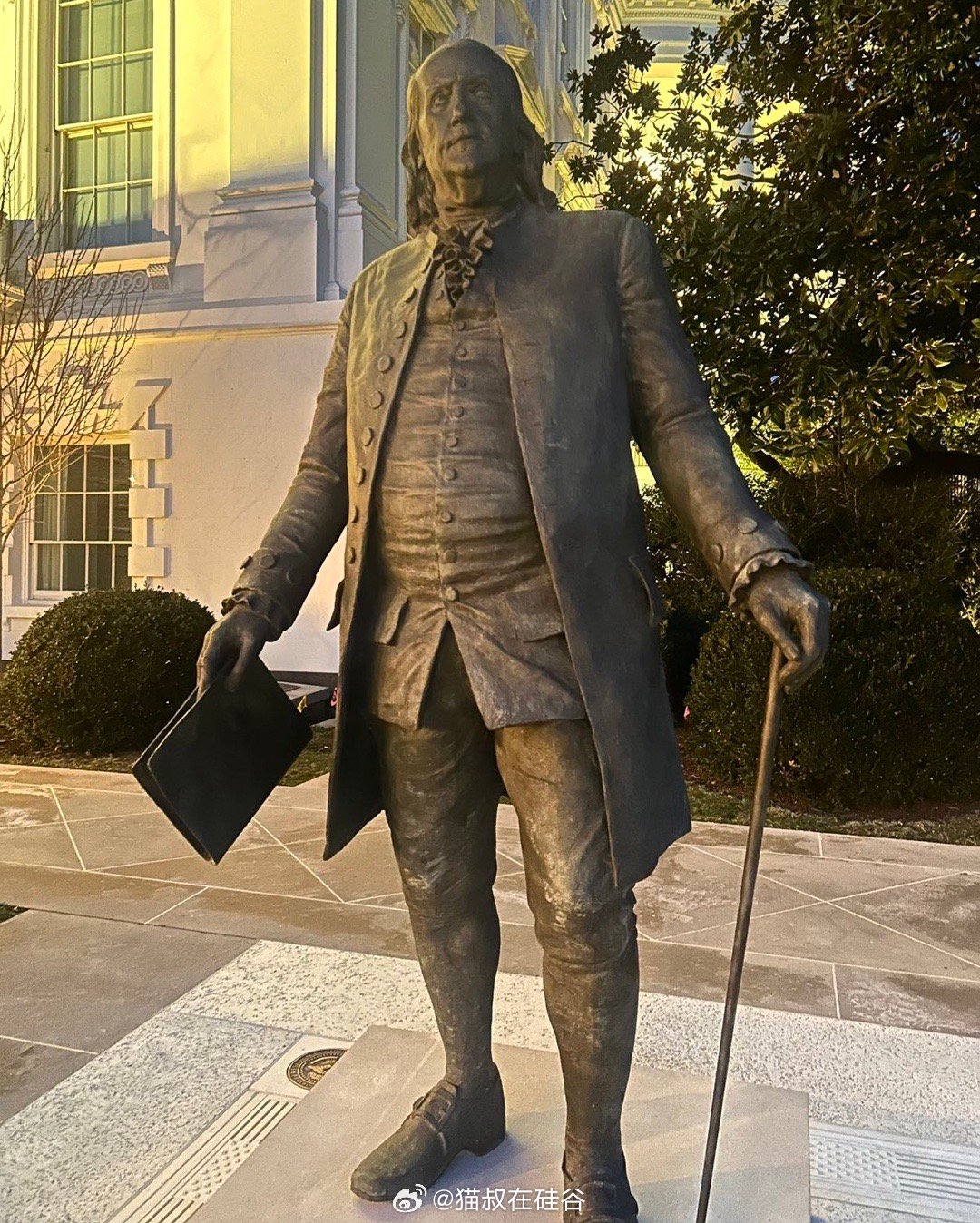 白宫草坪上安装了托马斯·杰斐逊和本杰明·富兰克林的新雕像。感觉很快就要出现一位伟大总统的新雕像了,与这些美国开国元勋站在一起。