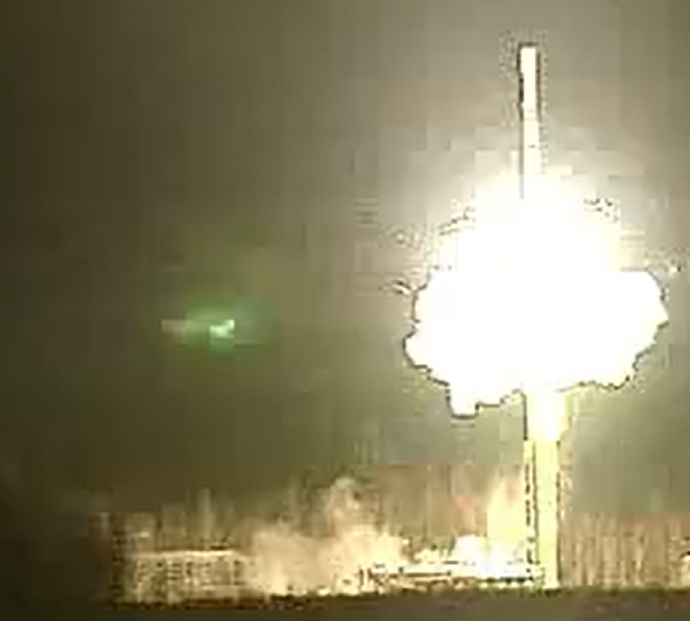 作为对比——“白杨-M”机动洲际弹道导弹在演习发射视频中(图5、图6),其导弹发射筒的起竖时间仅为15秒(液压系统工作时间),而抛掉发射筒前盖-导弹起竖-导弹发射的总时间仅为约30秒(从导弹出筒速度可知视频未经过加速)。除液压系统技术差距外,相比“白杨-M”使用的固体燃料,“霍拉姆沙赫尔-4”使用的液体燃料可能对起竖速度带来了限制。