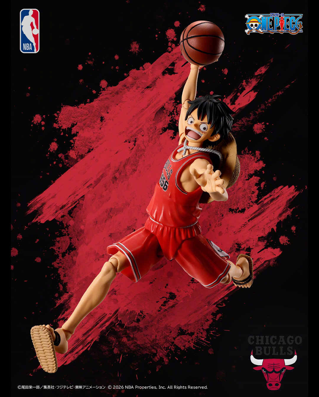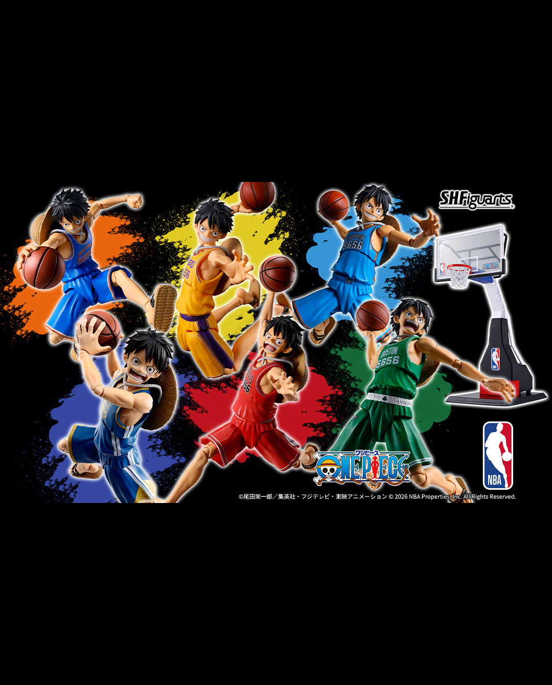 《海贼王》与6支NBA经典球队推出联名路飞S.H.Figuarts可动手办,并同时推出篮球架配件🏀
